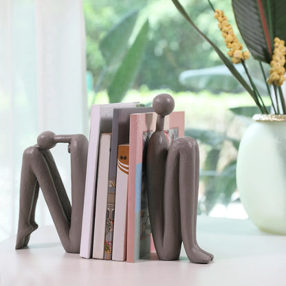 Bring a zen touch to your bookshelf or desk with this 2-piece set of bookends. Crafted from polyresin, these dynamic bookends show off modern, simplified figures sitting as if propped up against your favorite novels. Round heads rest on folded legs, while delicate feet complete the look.