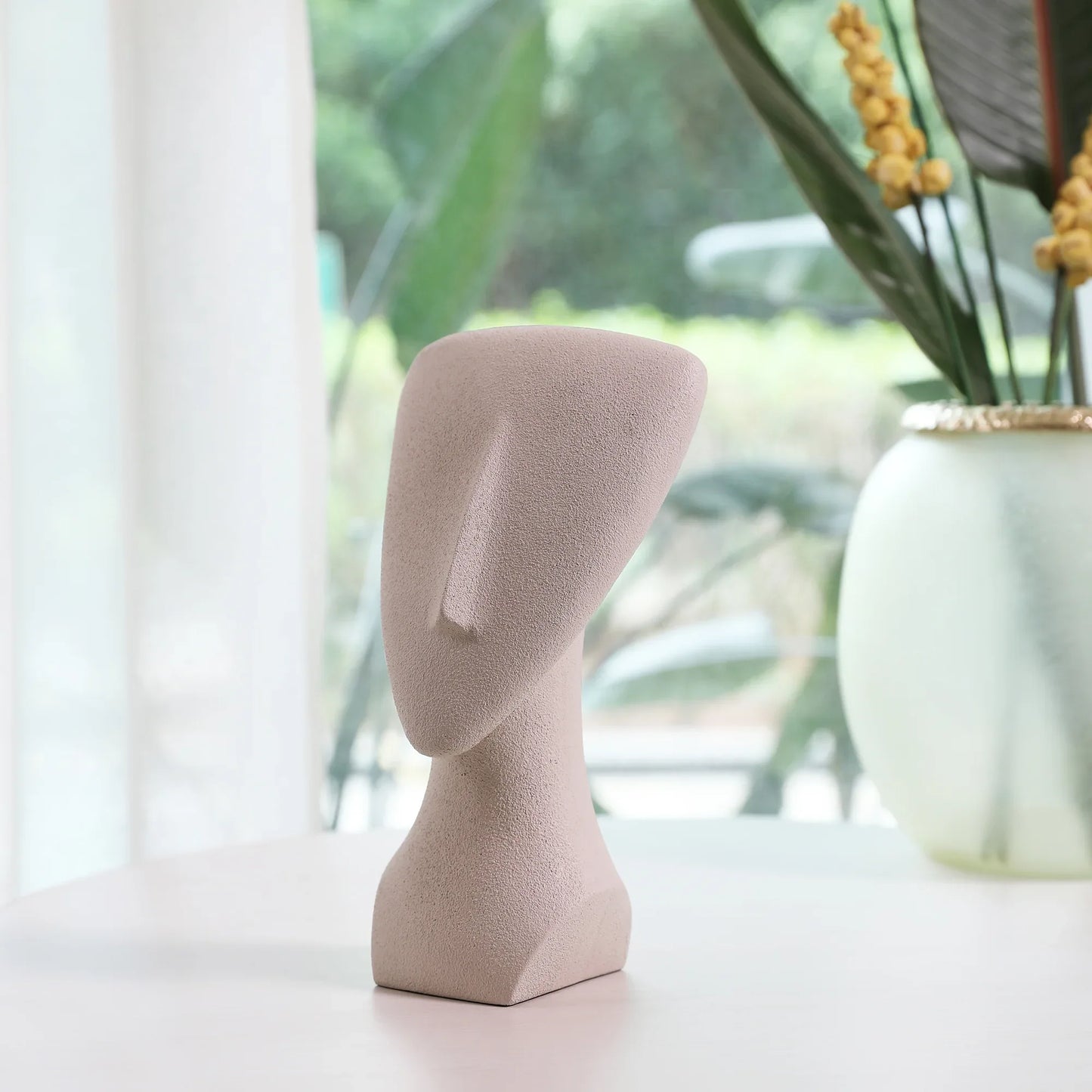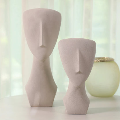 Miraya Modern Textured Face Polyresin Hand Finished Figurine Ivory 16cm by Living Essence