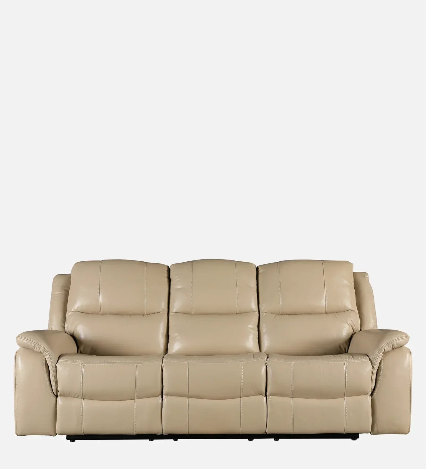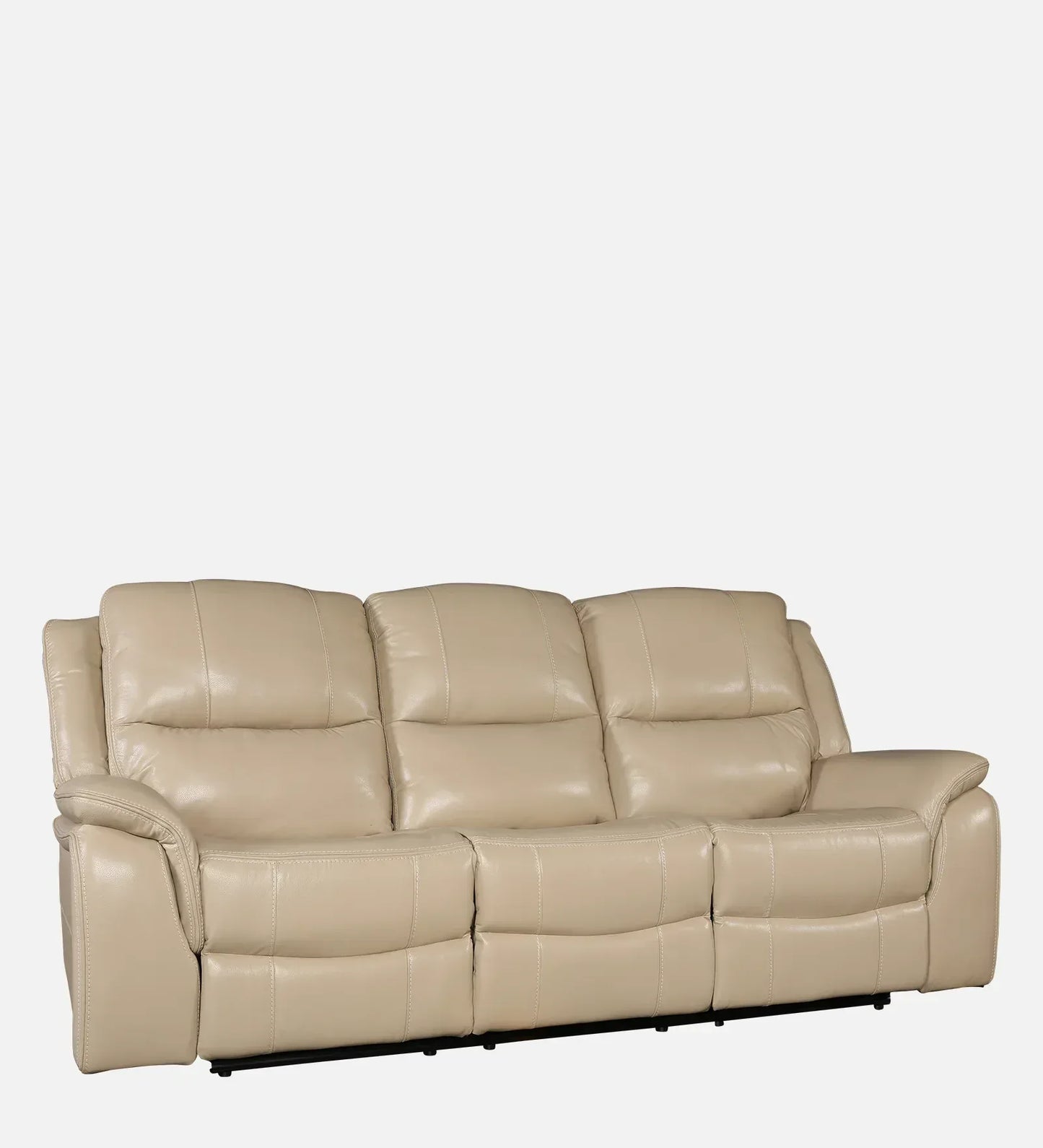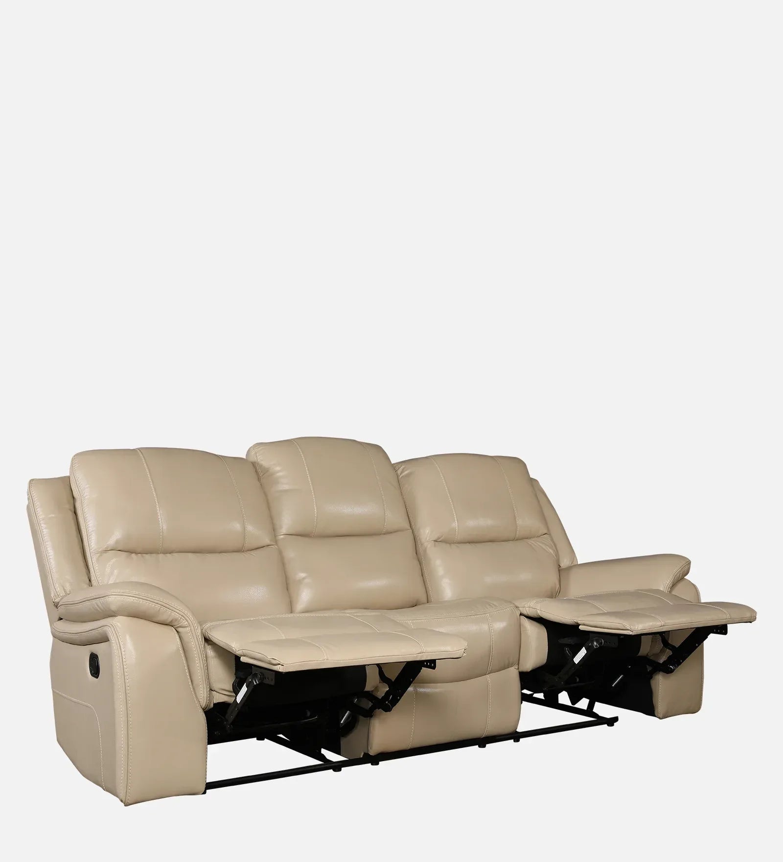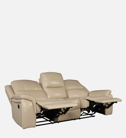 Murray Half Leather Three Seater Recliner in Beige Colour