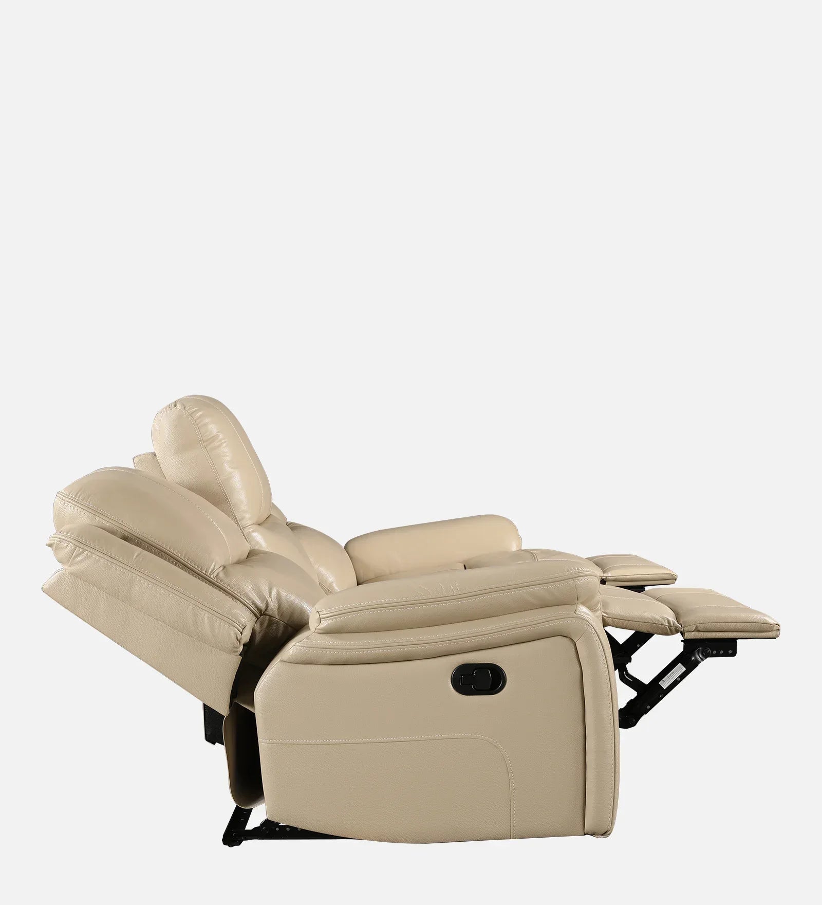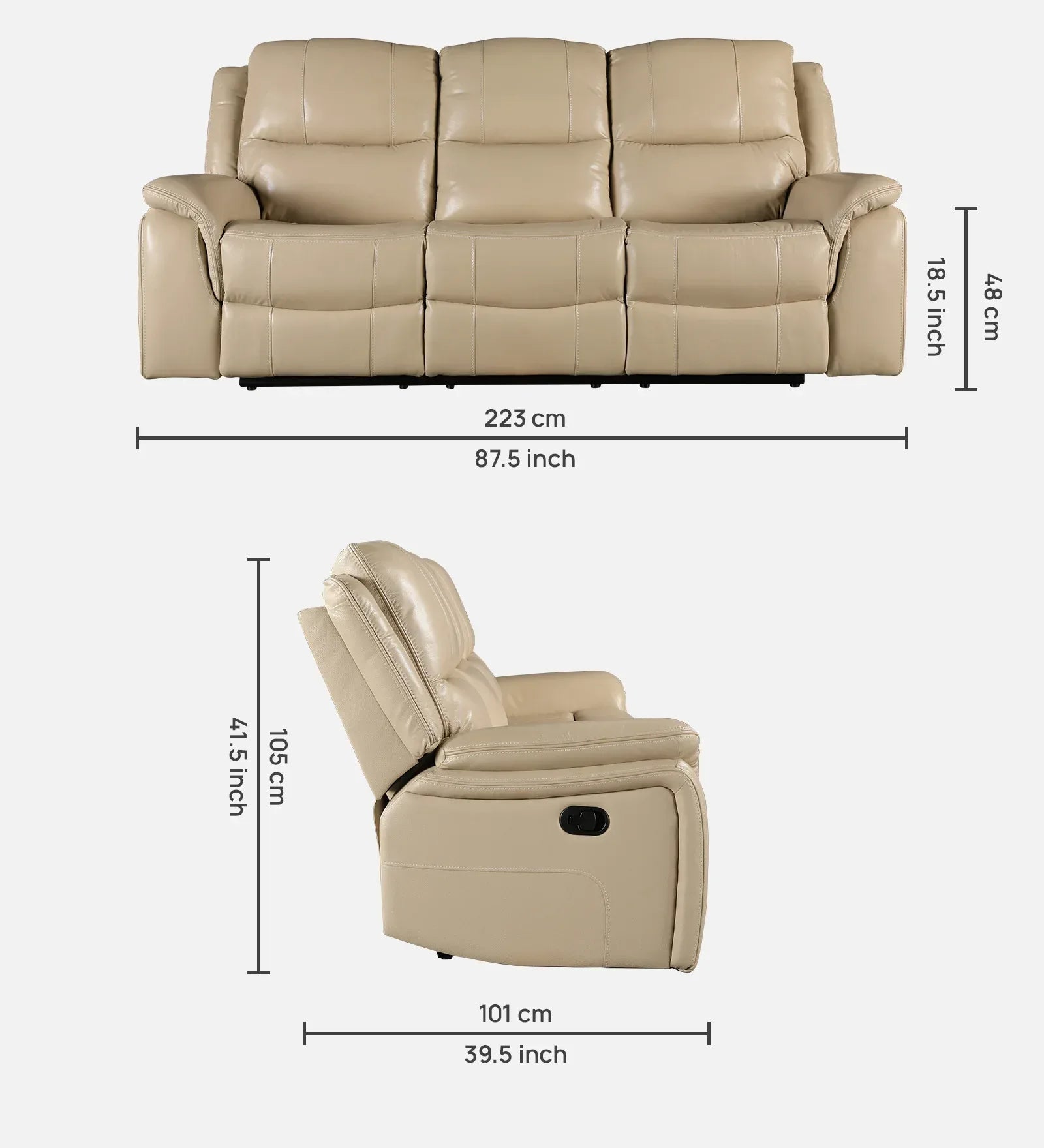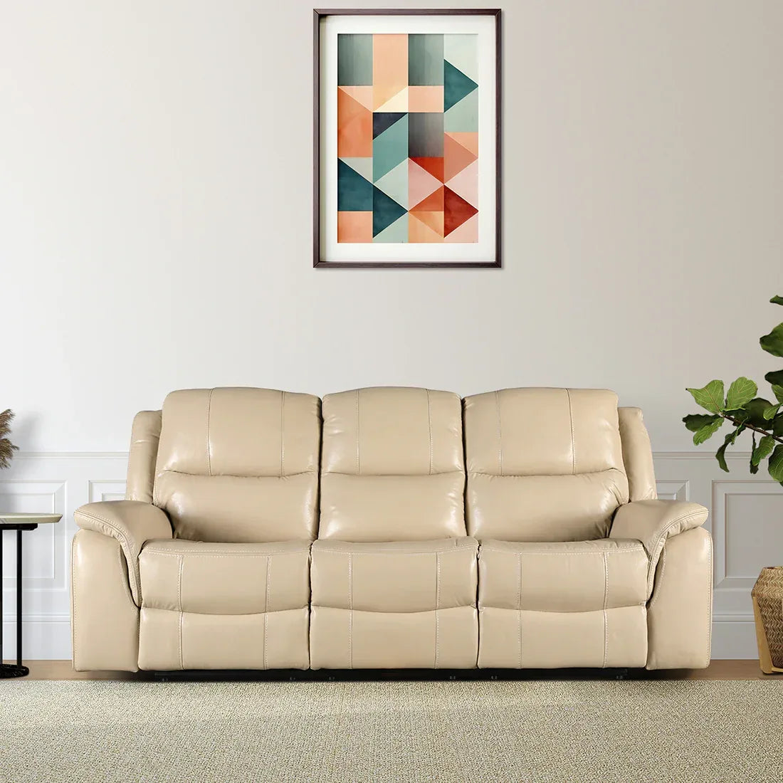 Murray Half Leather Three Seater Recliner in Beige Colour