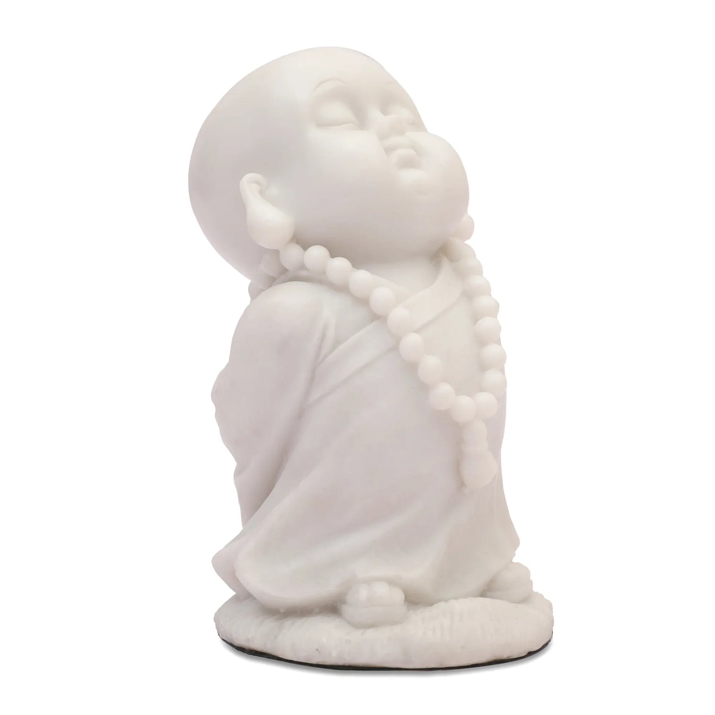 NAQSH MONK WITH MALA, POLYRESIN HAND FINISHED FIGURINE WHITE BY LIVNG ESSENCE