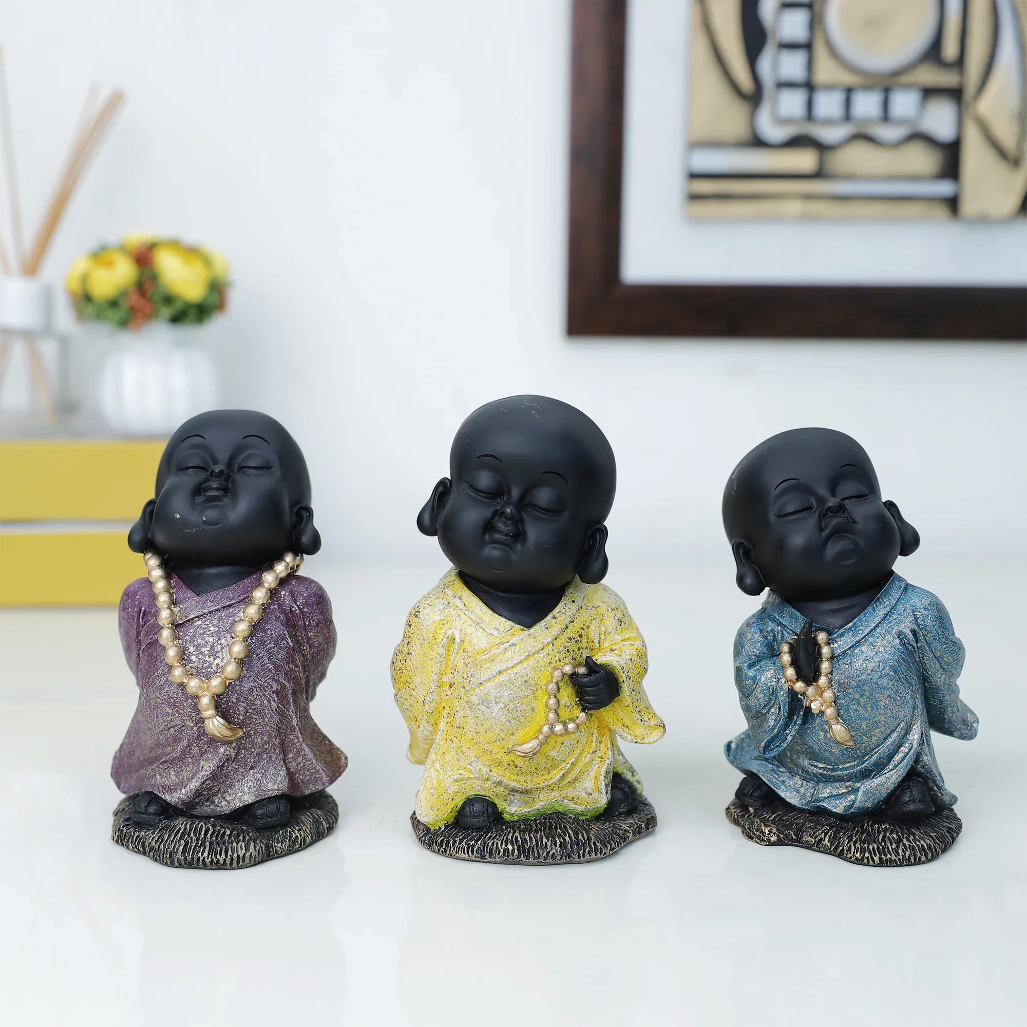 - Add that eclectic charm to your home decor with this vibrant yet calming monk figurine. It makes for a great statement piece while summoning good vibrations.