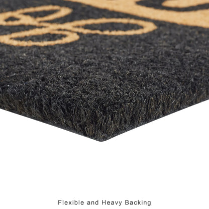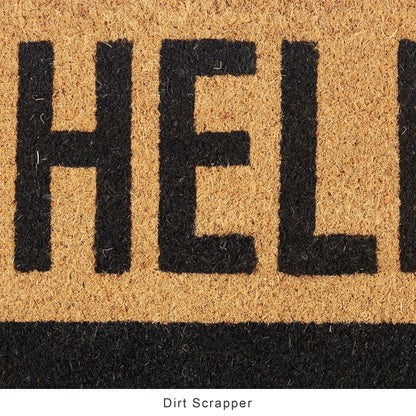 - Welcome guests into your home with our neutral colored typographic doormat. This quirky and smary doormat is crafted with coir and backed with PVC, this functional doormat has hard bristles which provides improved scraping and is slip resistant. The doormat is designed to be durable and long lasting It is easy to clean and maintain.