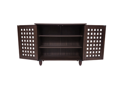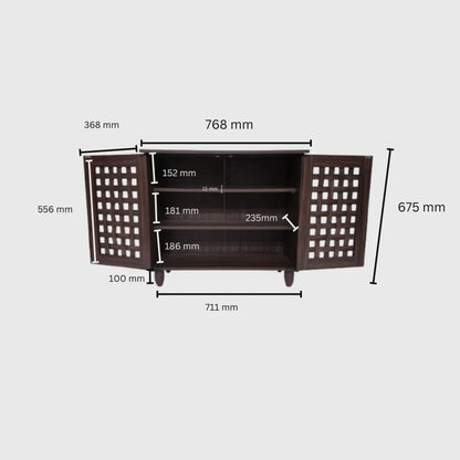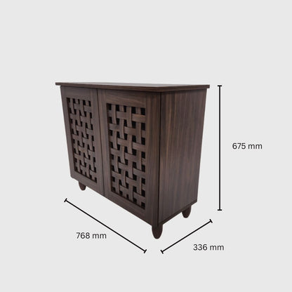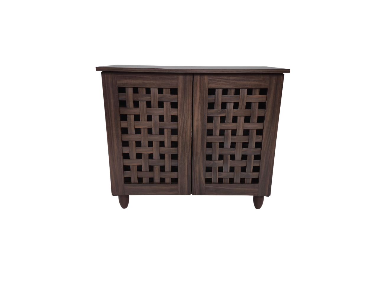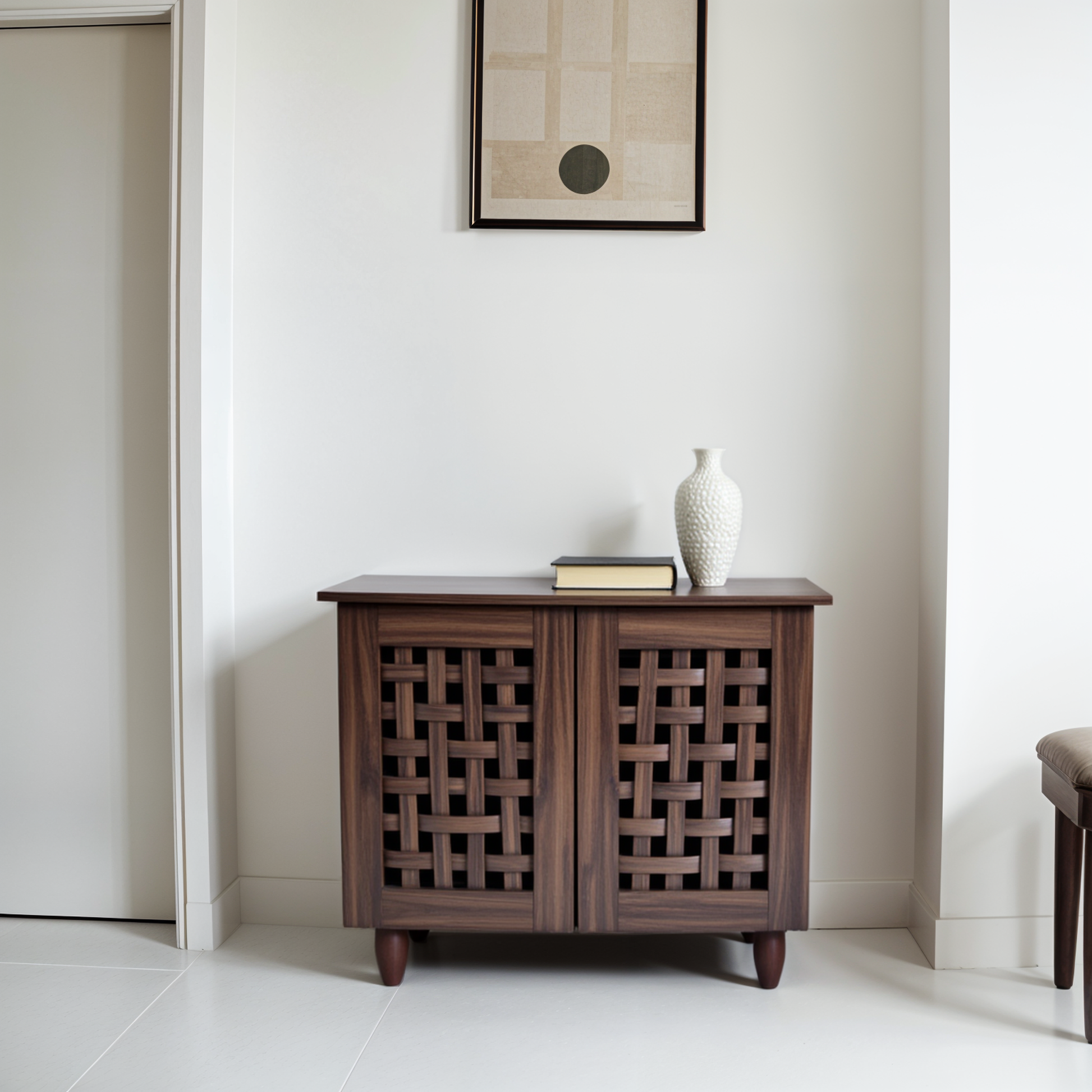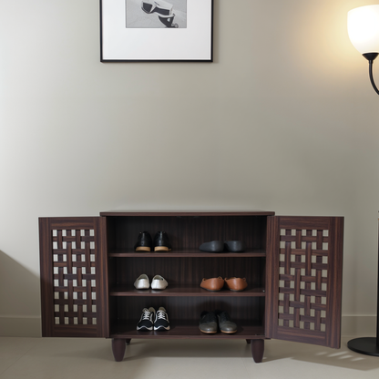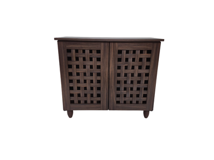 Neste 2 Door Wooden Shoe Rack | Columbia Walnut Finish | Compact Shoe Storage Cabinet for Entryway & Bedroom | Holds Up to 9 Pairs