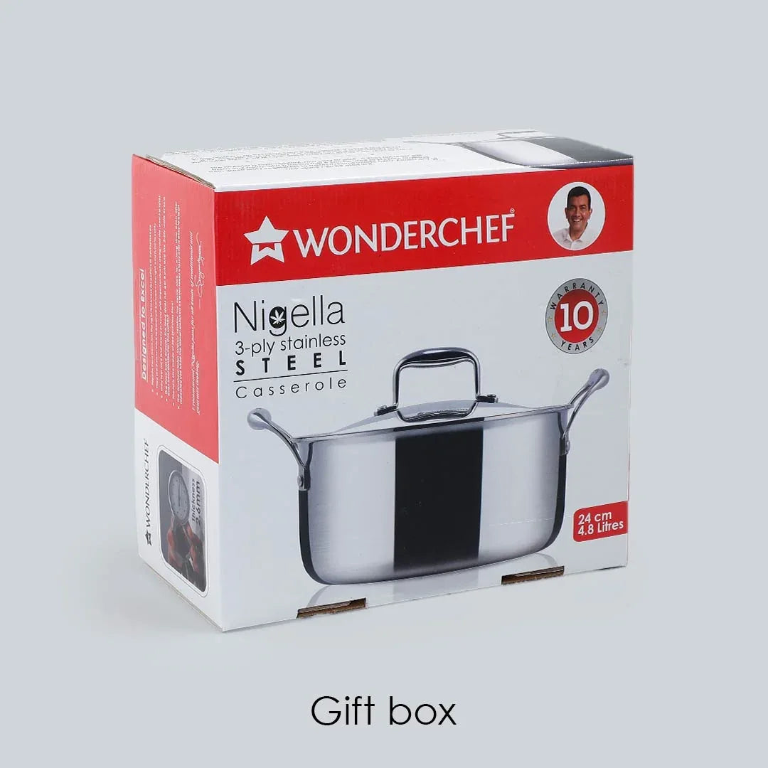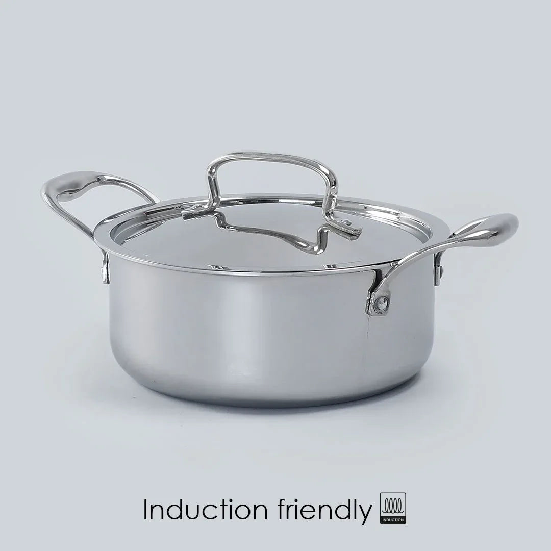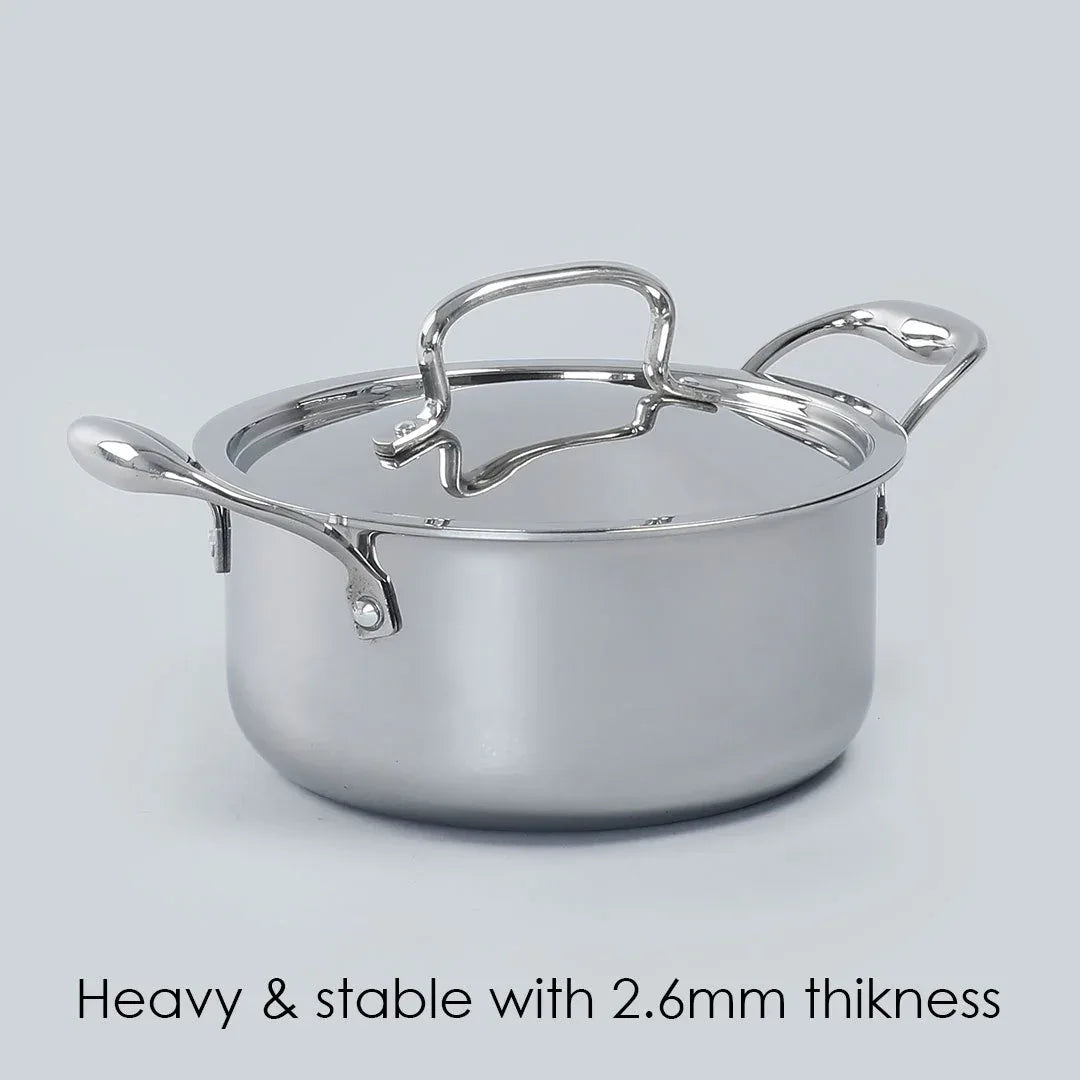Nigella Triply Stainless steel Casserole With Lid 24cm/ 4.8 Ltr/ 2.6mm in Silver Colour