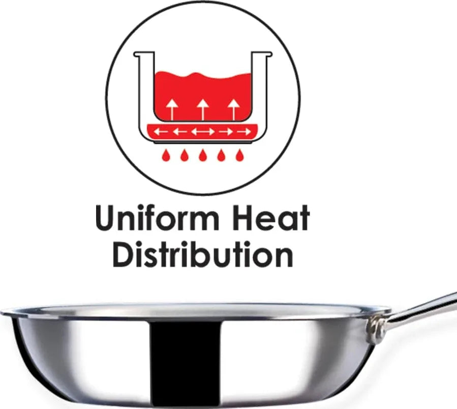 - The thick base ensures the food does not get burnt and the 3-ply walls ensure even heat distribution throughout