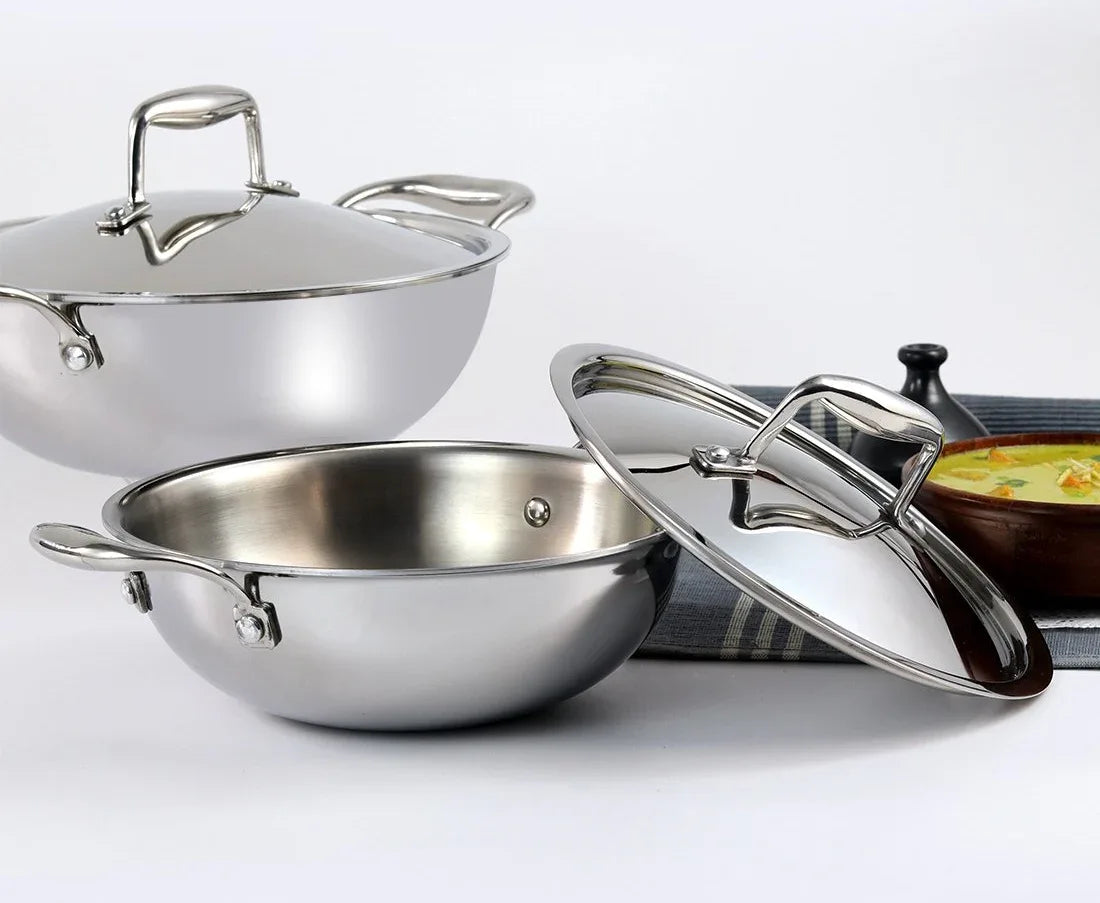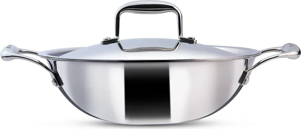 Nigella Triply Stainless steel Kadhai With Lid 24cm / 2.2Ltr / 2.6mm in Silver Colour