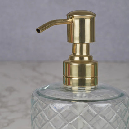 Nora Glass Cut Work Liquid Soap Dispenser in Transparent Colour