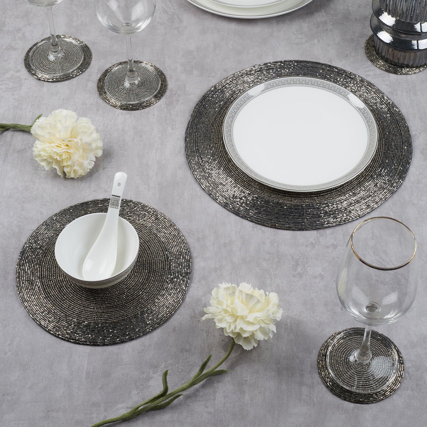 - Give your dining table a chic look with this handcrafted and exclusively designed beaded trivet. The tone on tone use of silver sequin beads make this very special and elegant, ideal to make your dining decor stand out this festive season. While you can use them all year round, beaded trivets are great for formal dinners and events. This multipurpose table linen collection can also be used as accent pieces to decorate and elevate the look of your living spaces.
