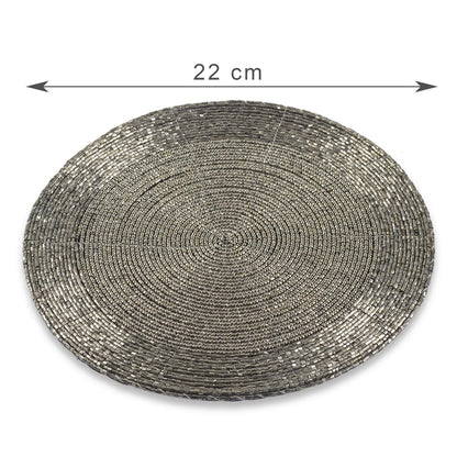 Nora Handmade Beaded Trivet Dia 22 Cm in Silver Colour