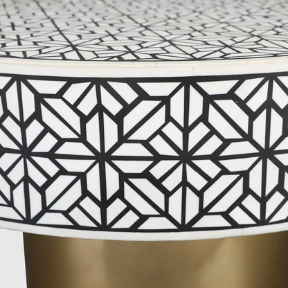 Ossein Iron Center Table in Black & White Colour