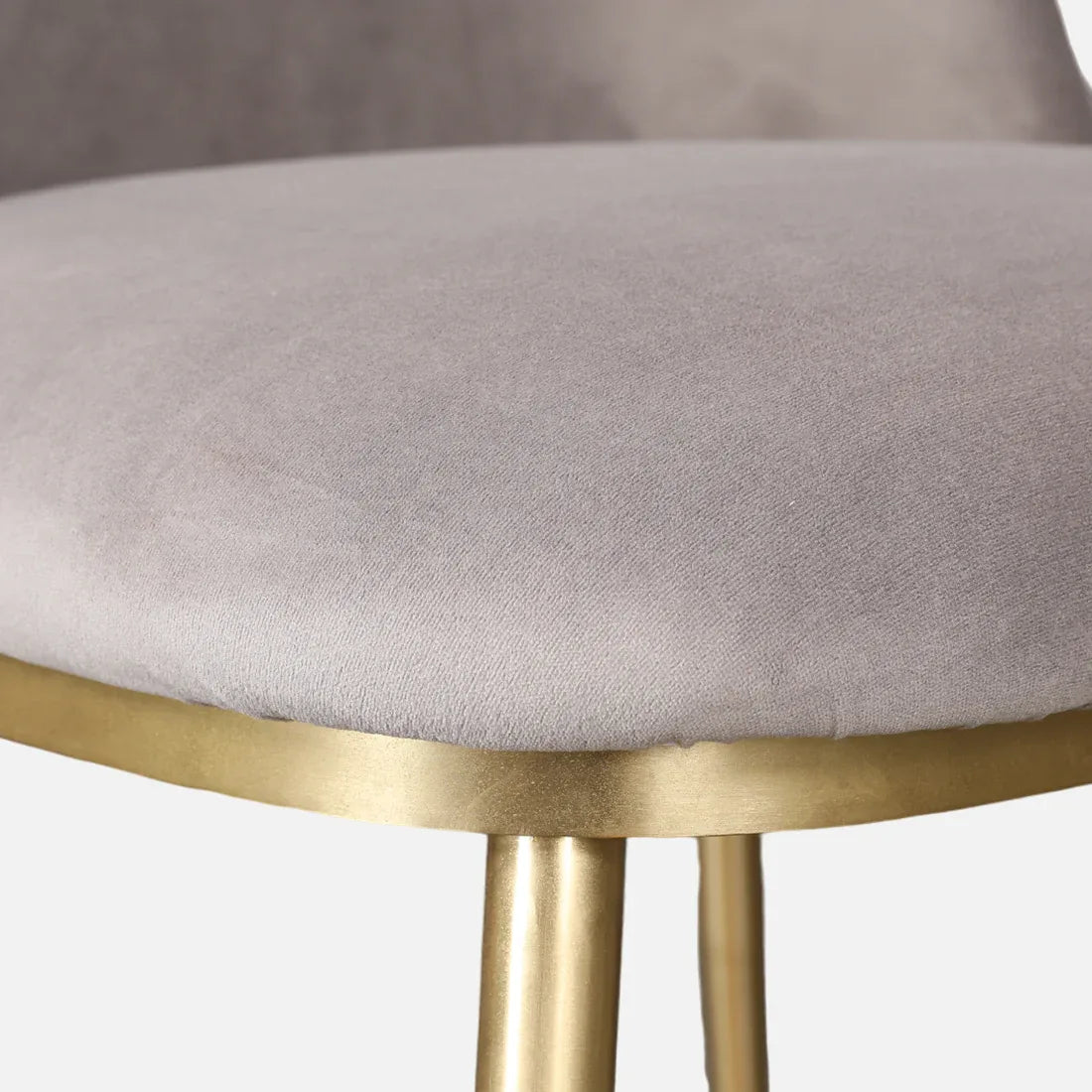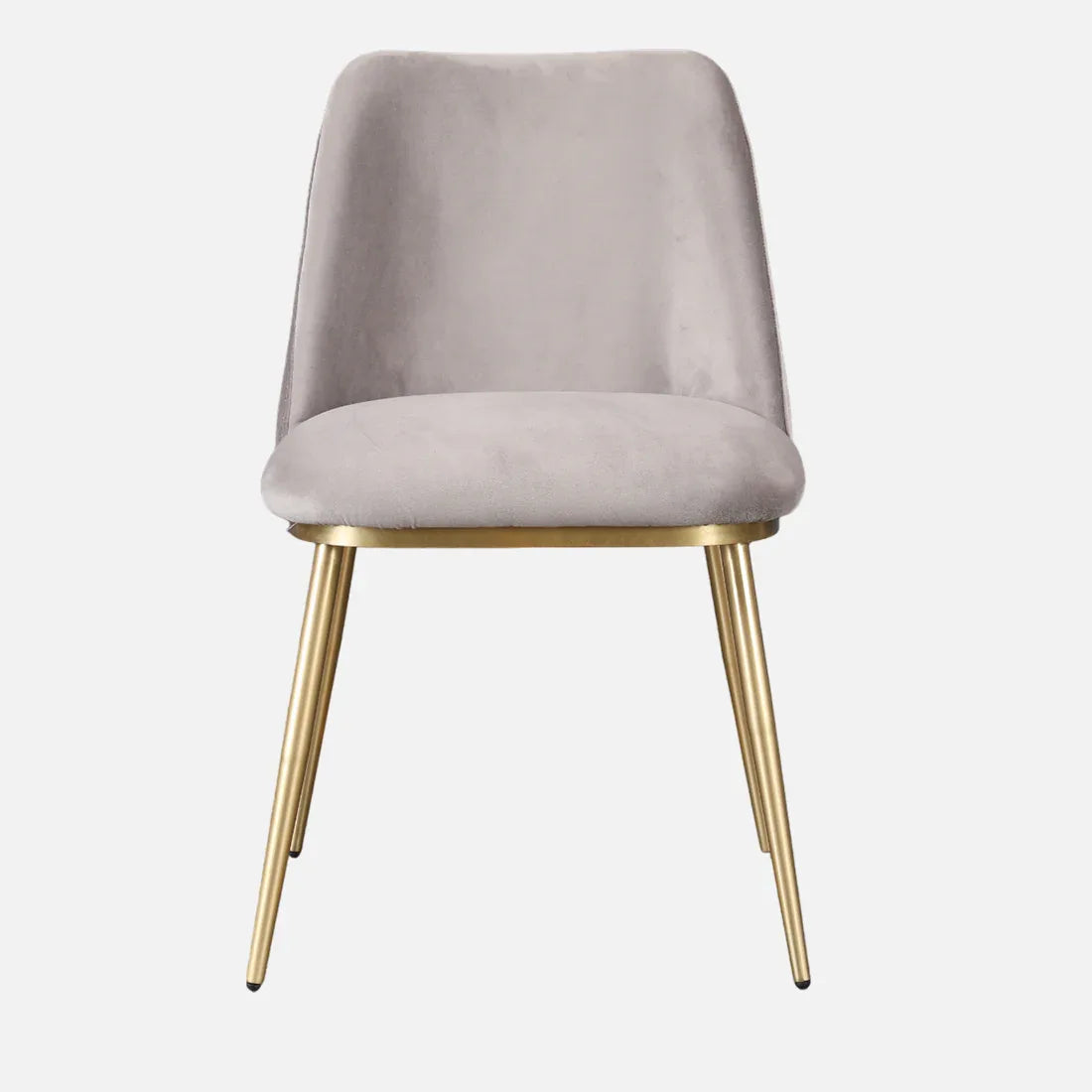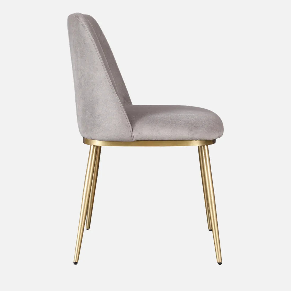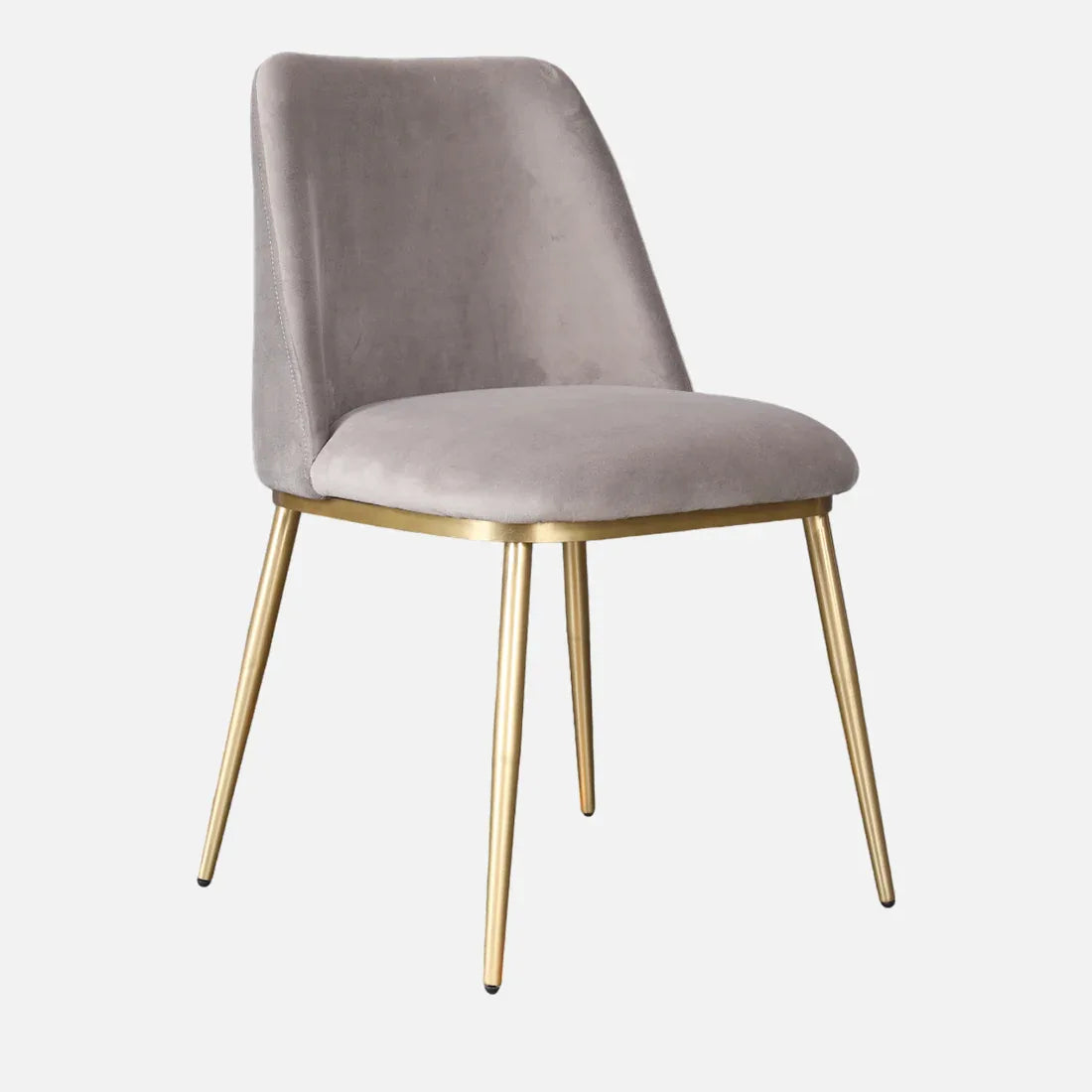 - The Palatine Dining Chair offers a lavish seating experience with its upholstered seat and back covered in velvet fabric available in a stylish gray and rust color combination.