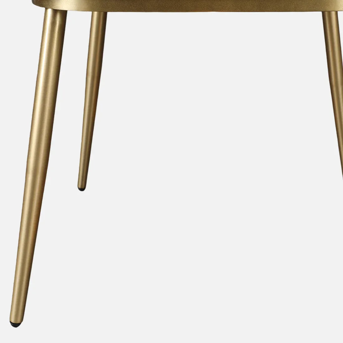 - The tables legs are made of golden metal with a curved and elegant design at the bottom.