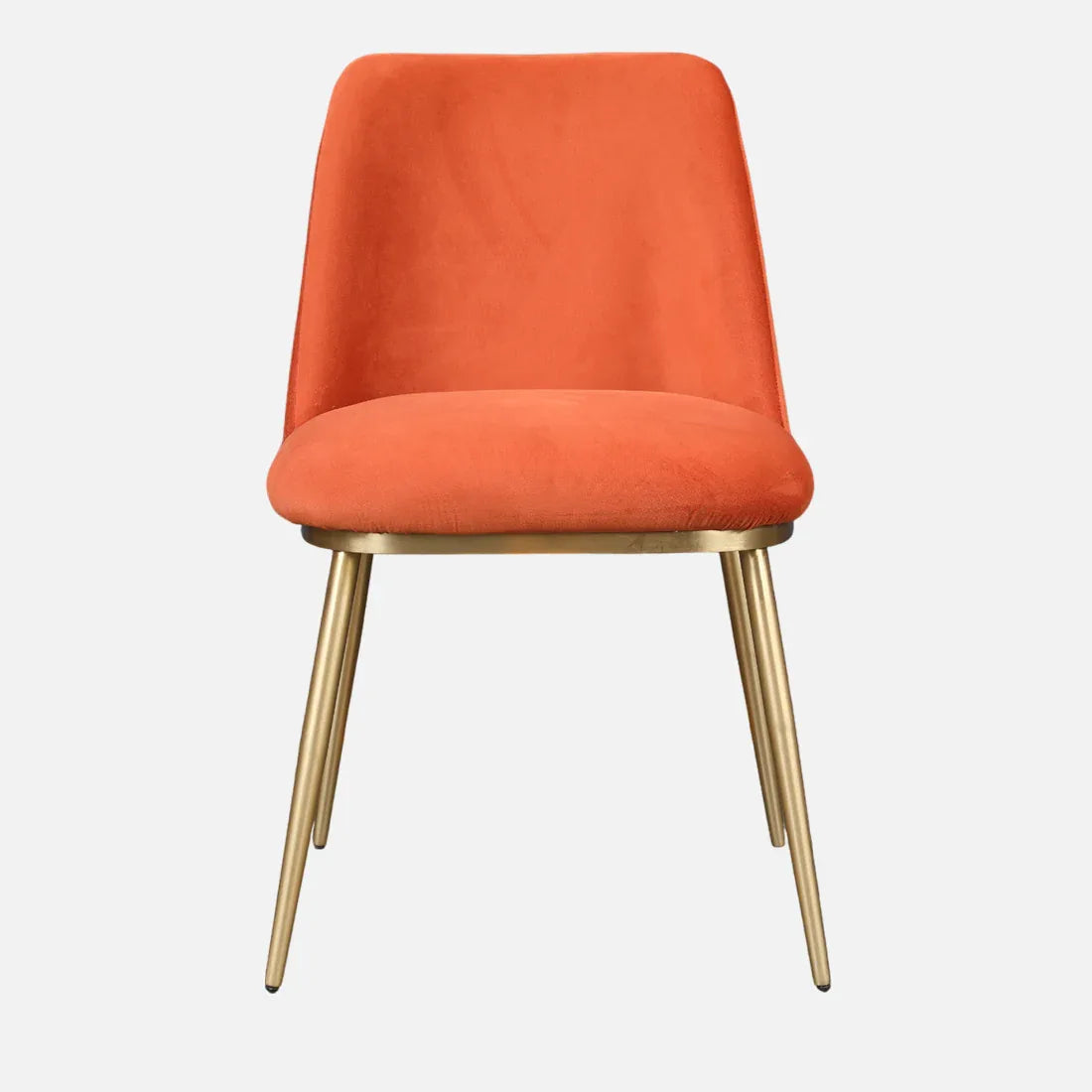 - The Palatine Dining Chair offers a lavish seating experience with its upholstered seat and back covered in velvet fabric available in a stylish gray and rust color combination.