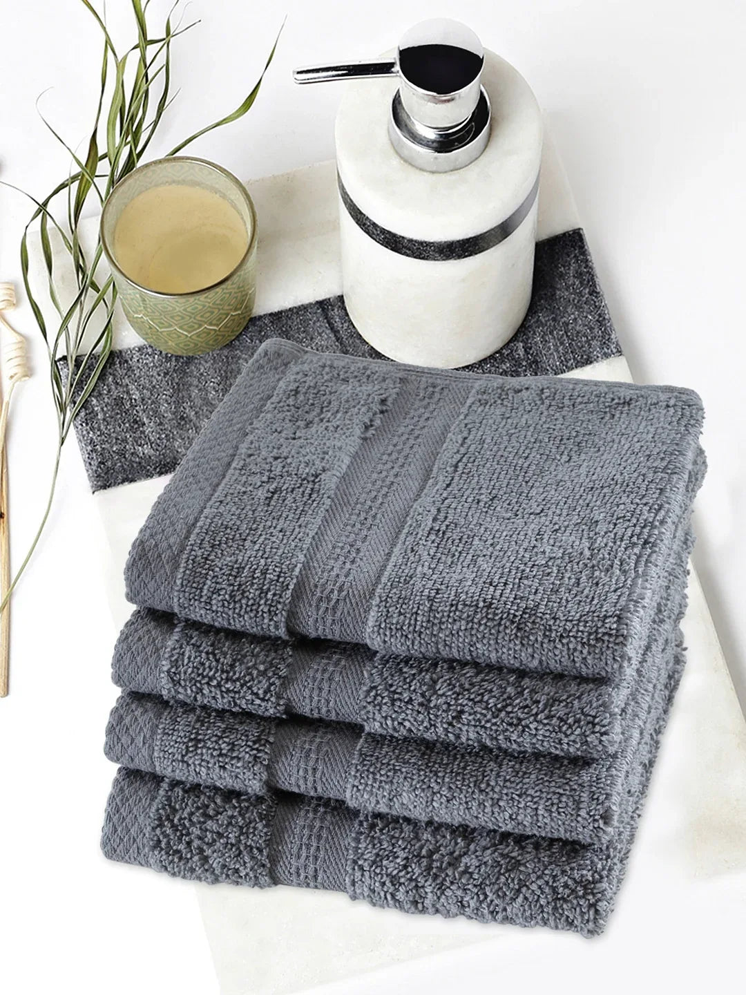 Paradiso Cotton Set Of 4 Face Towel 30X30 Cm 500 Gsm in Grey Colour