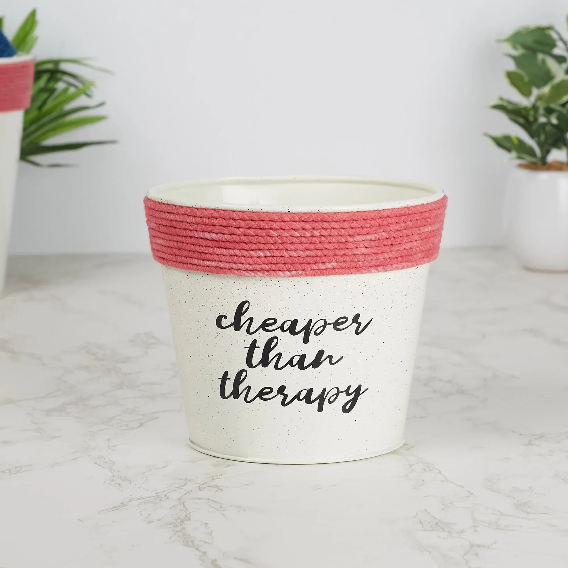 Pep Pop Metal Funky Quote Planter 14Cm in Off White & Fuchsia Colour