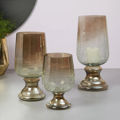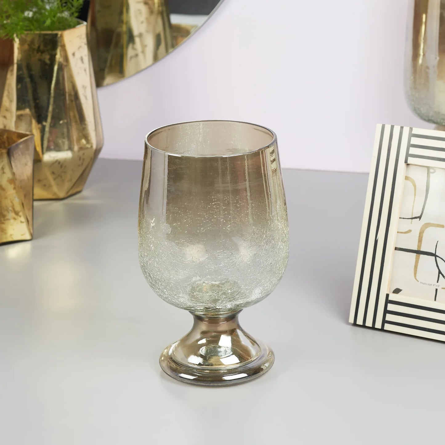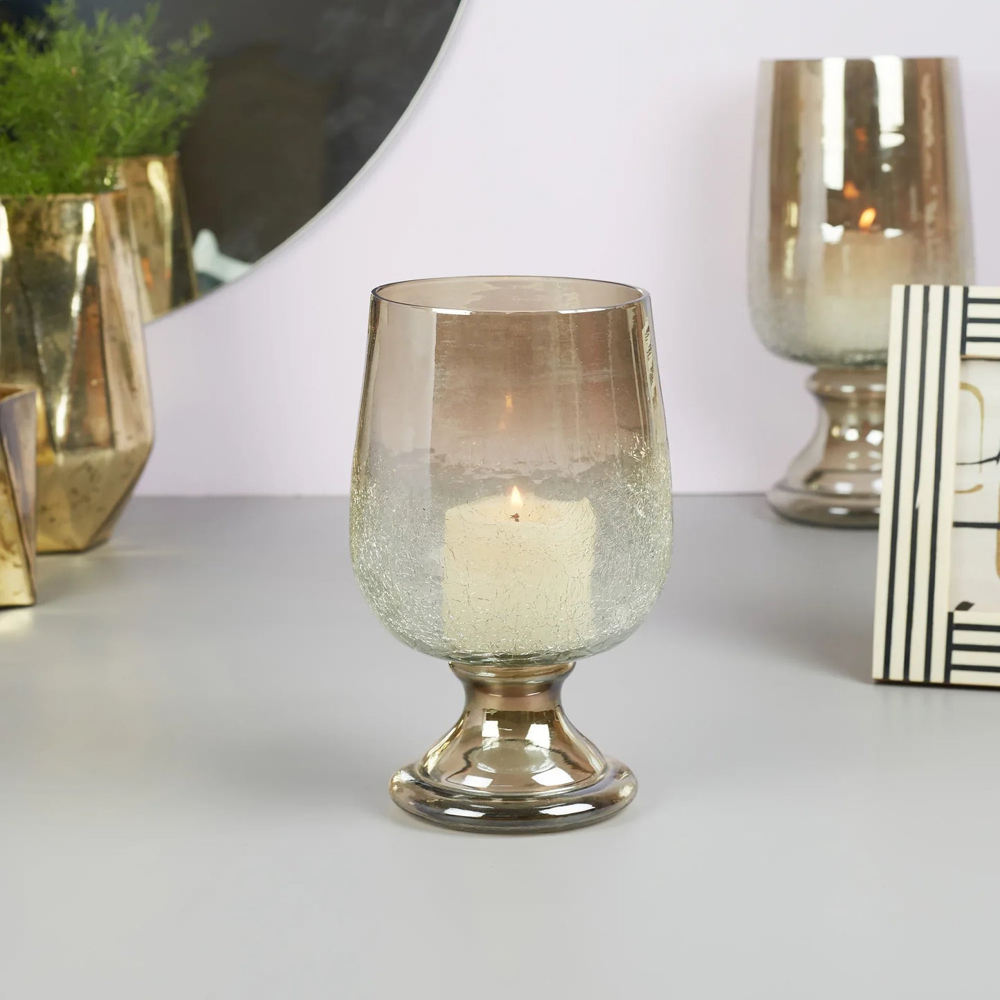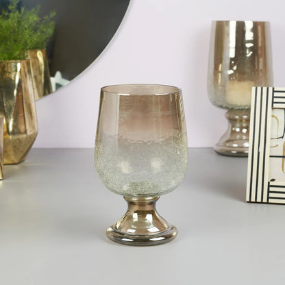 Phiona Glass Crack Handcrafted Hurricane Ombre 23 Cm in Black Colour