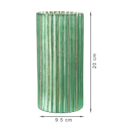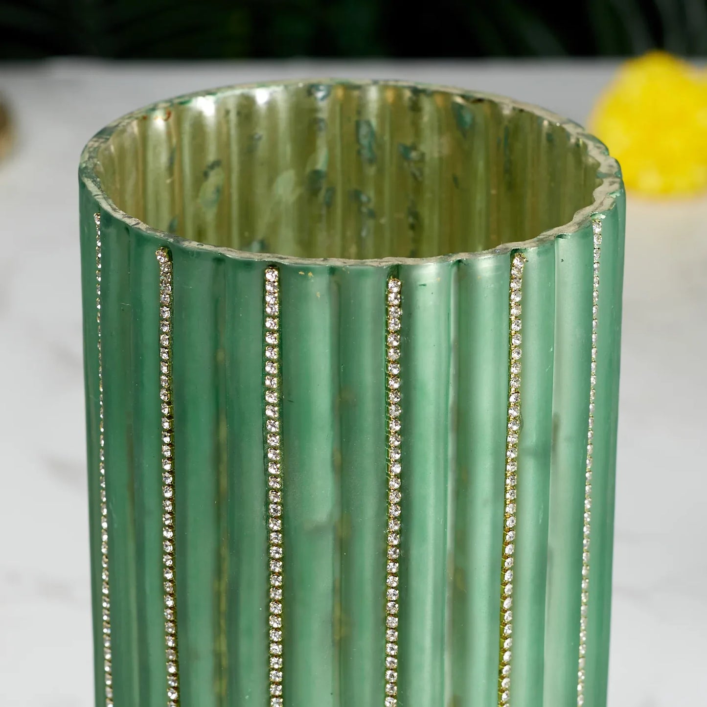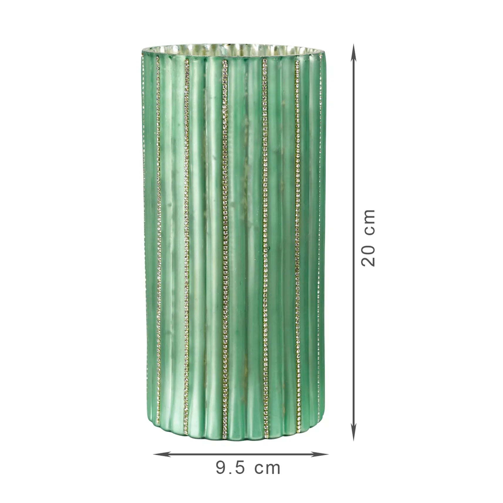 Phiona Glass Diamond Stud Handcrafted Votive 20 Cm in Emerald Colour