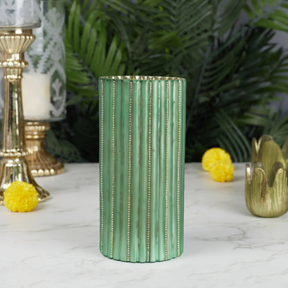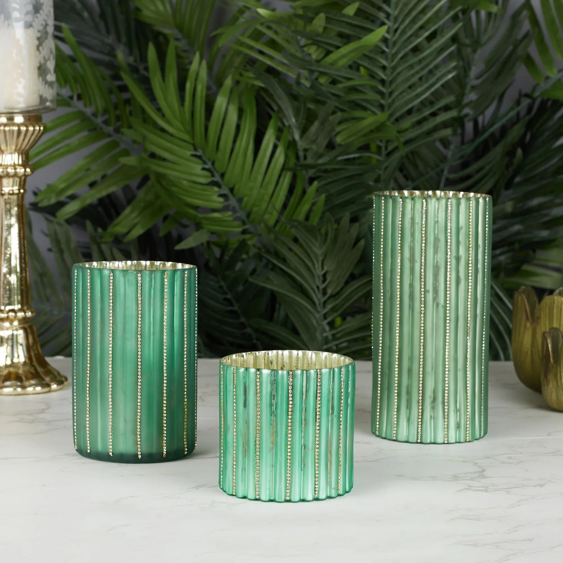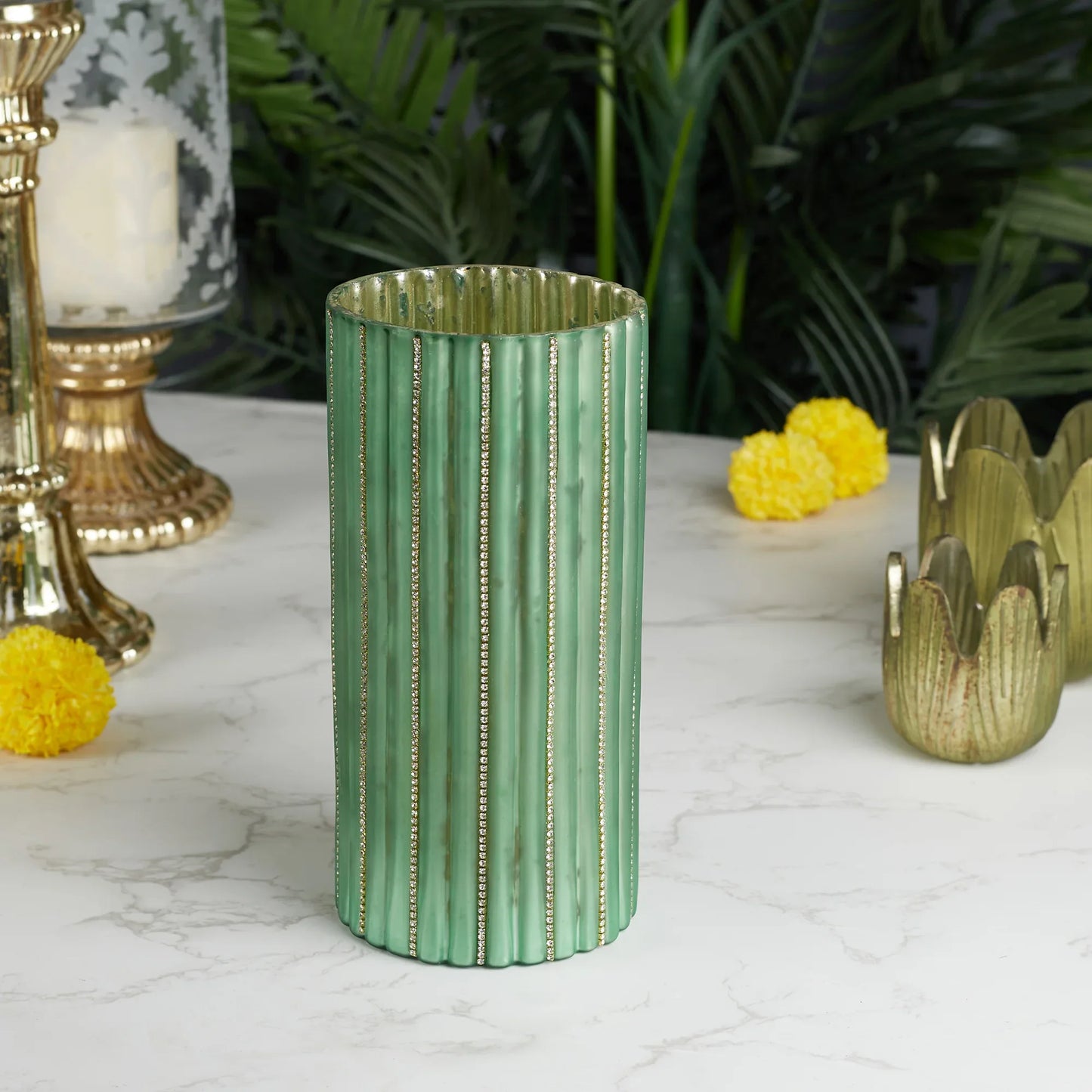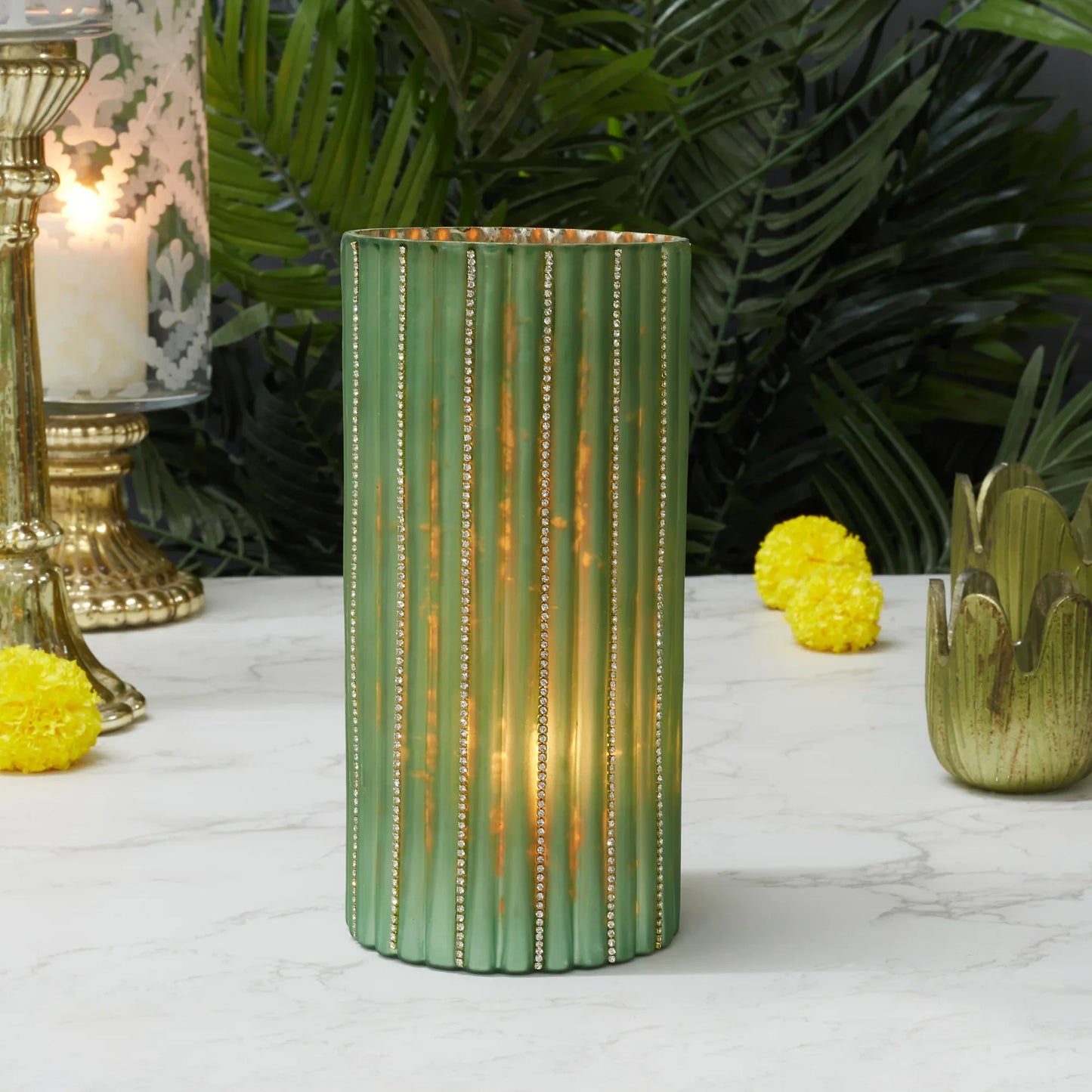 Phiona Glass Diamond Stud Handcrafted Votive 20 Cm in Emerald Colour