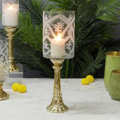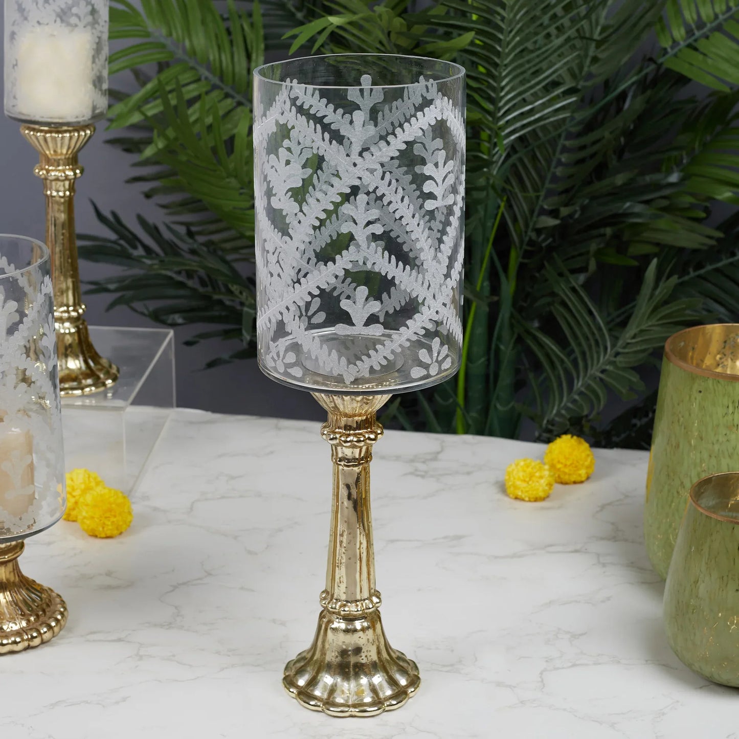 Phiona Glass Etched Handcrafted Hurricane 49 Cm in Gold Colour