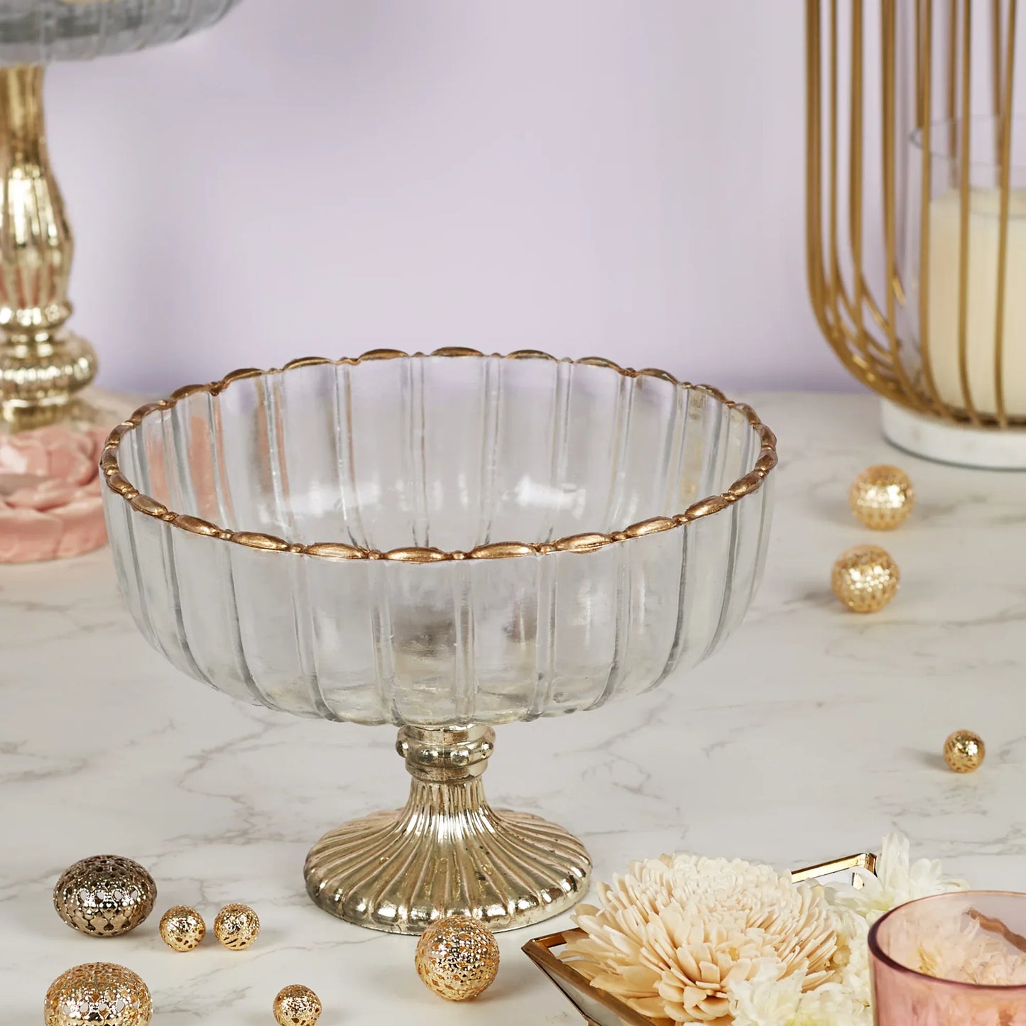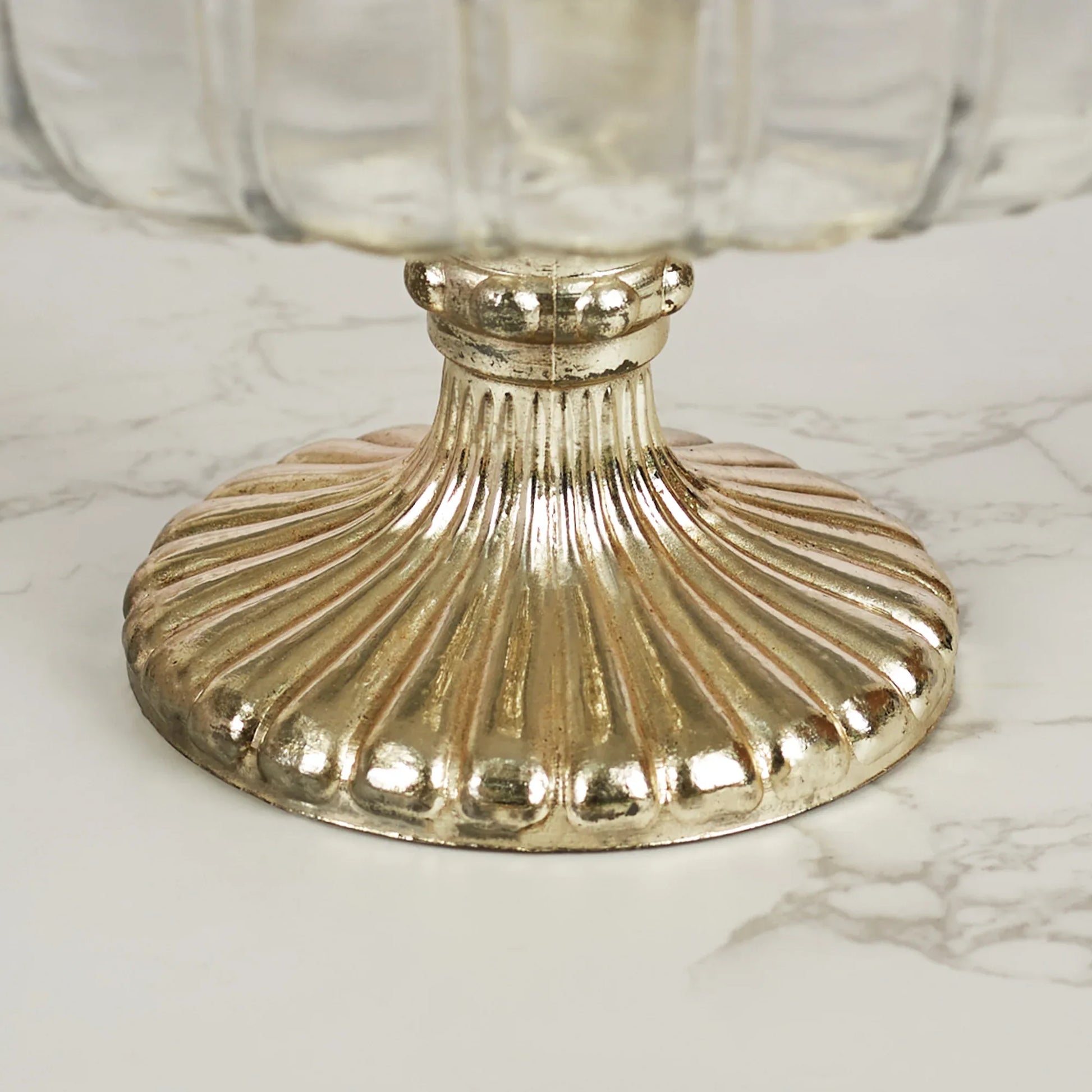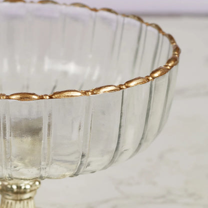 Phiona Glass Fluted Handcrafted Bowl 13 Cm in Gold Colour