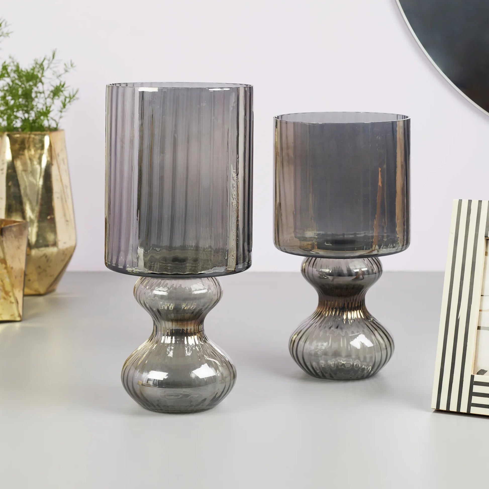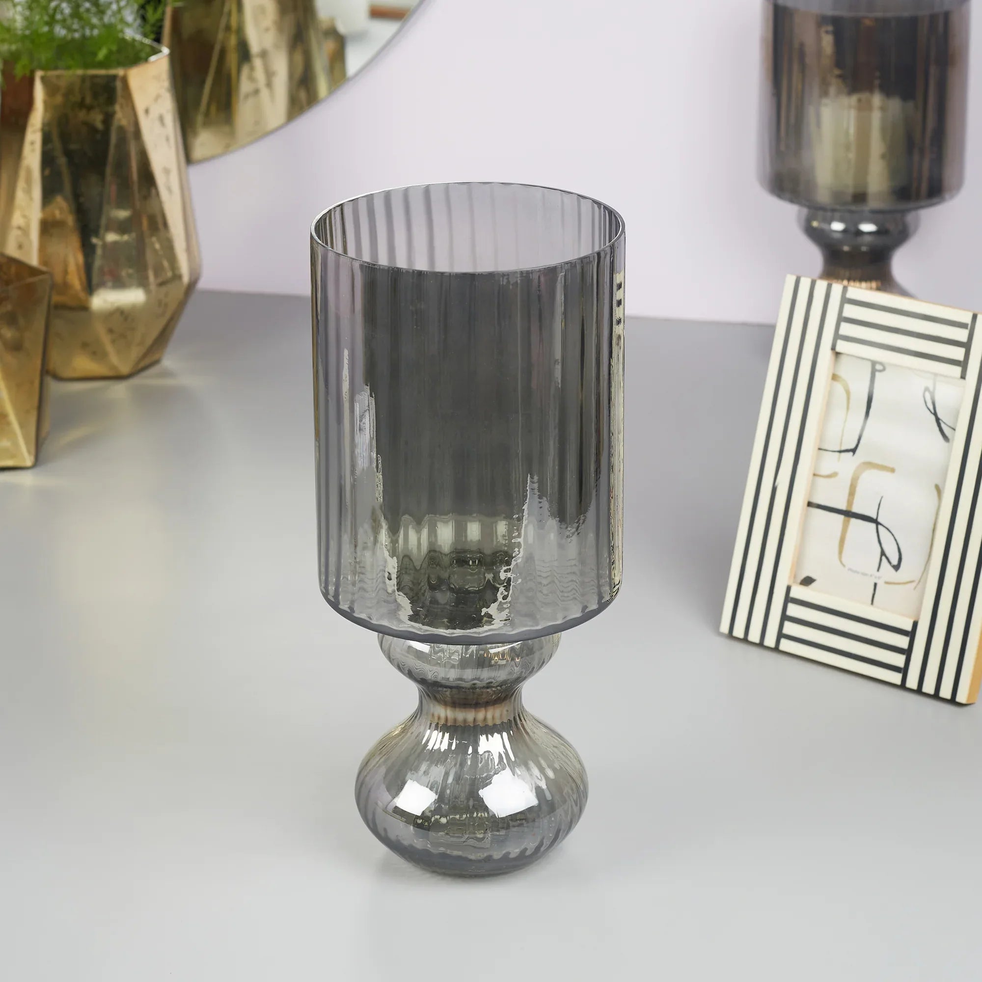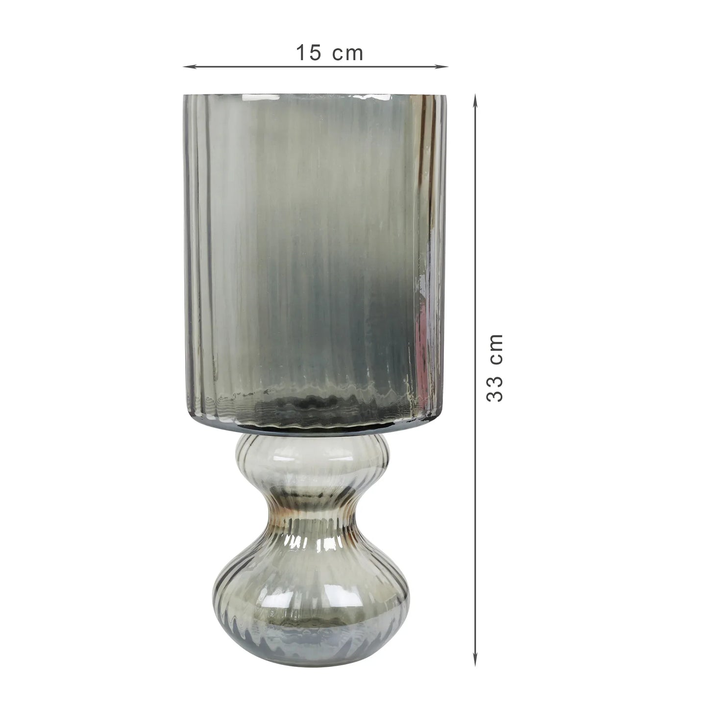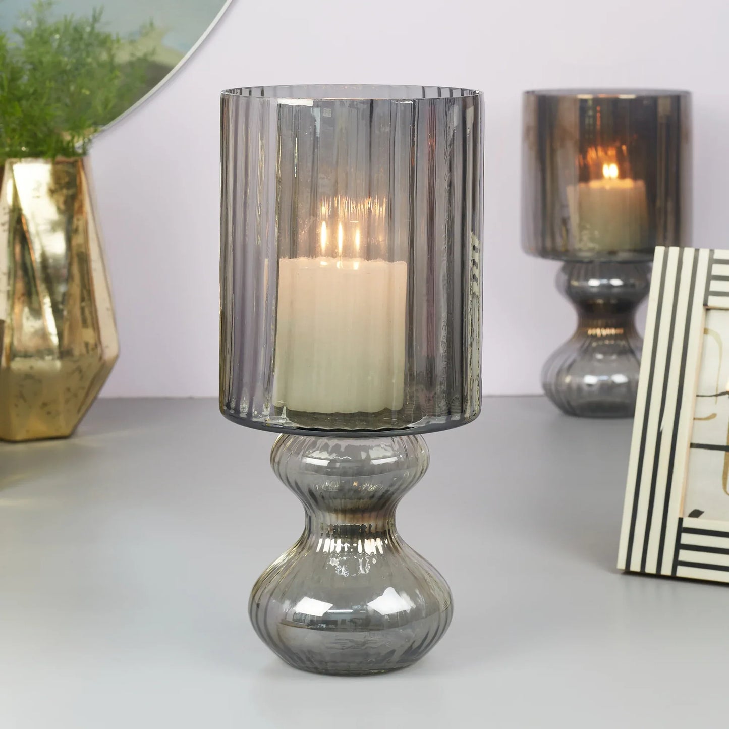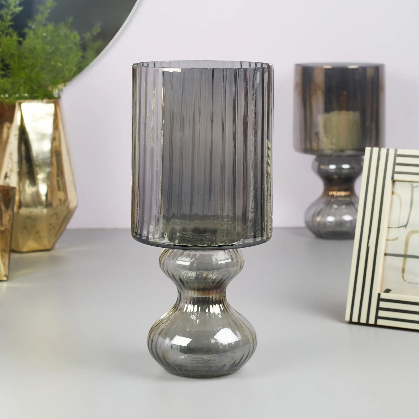 Phiona Glass Fluted Handcrafted Hurricane 33Cm in Black Colour