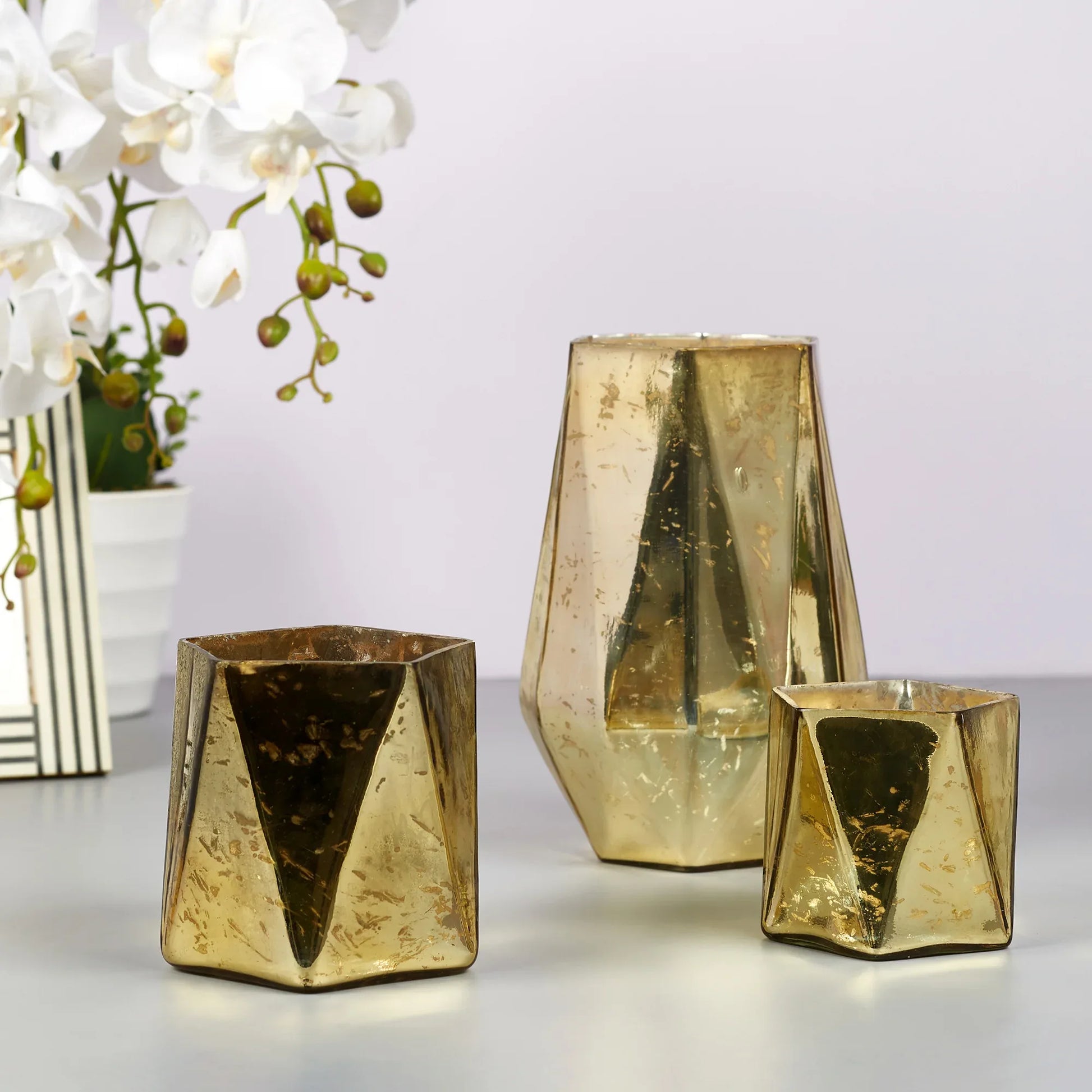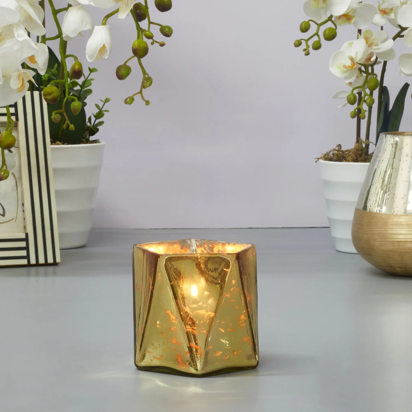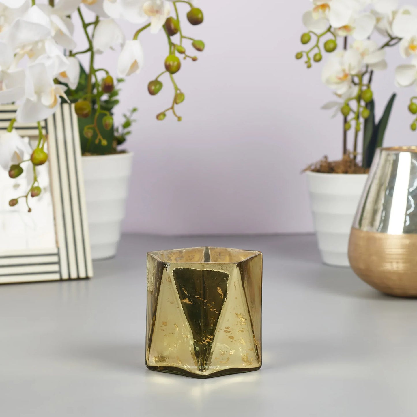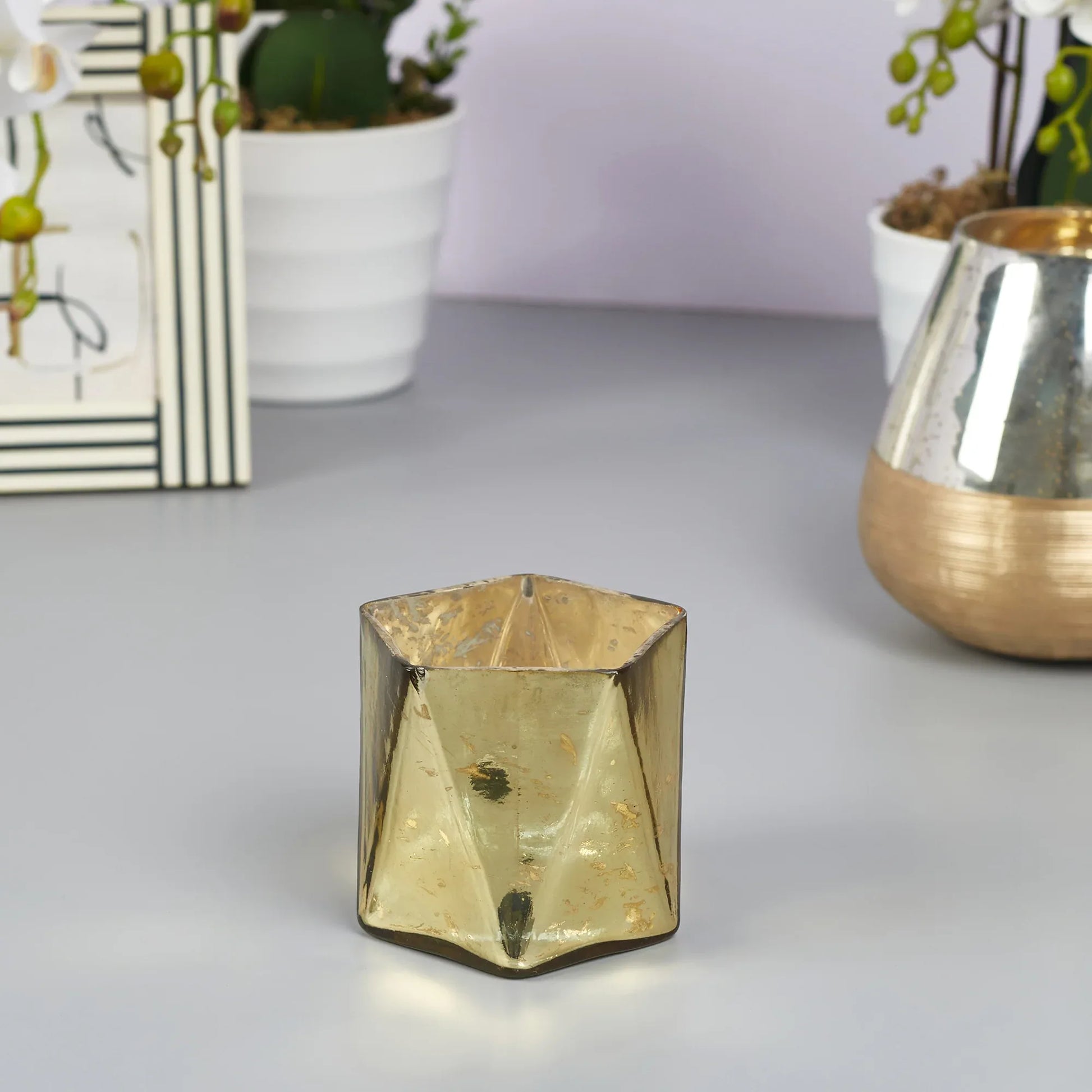 Phiona Glass Hexa Handcrafted Votive Mercury 10 Cm in Gold Colour