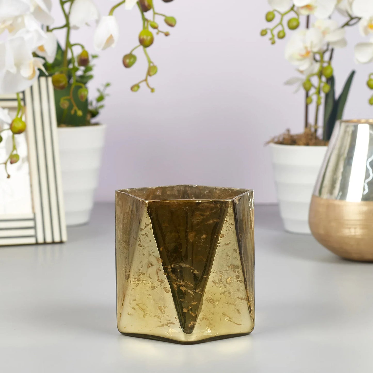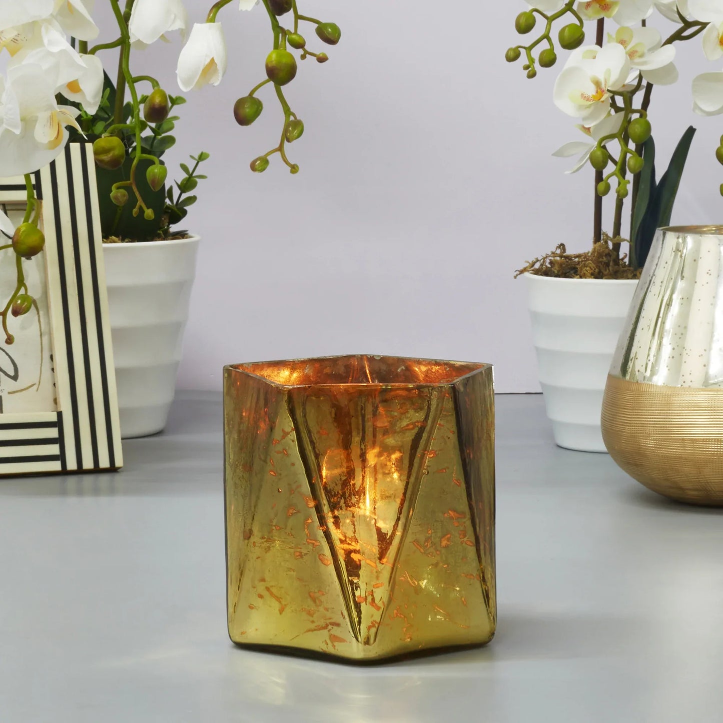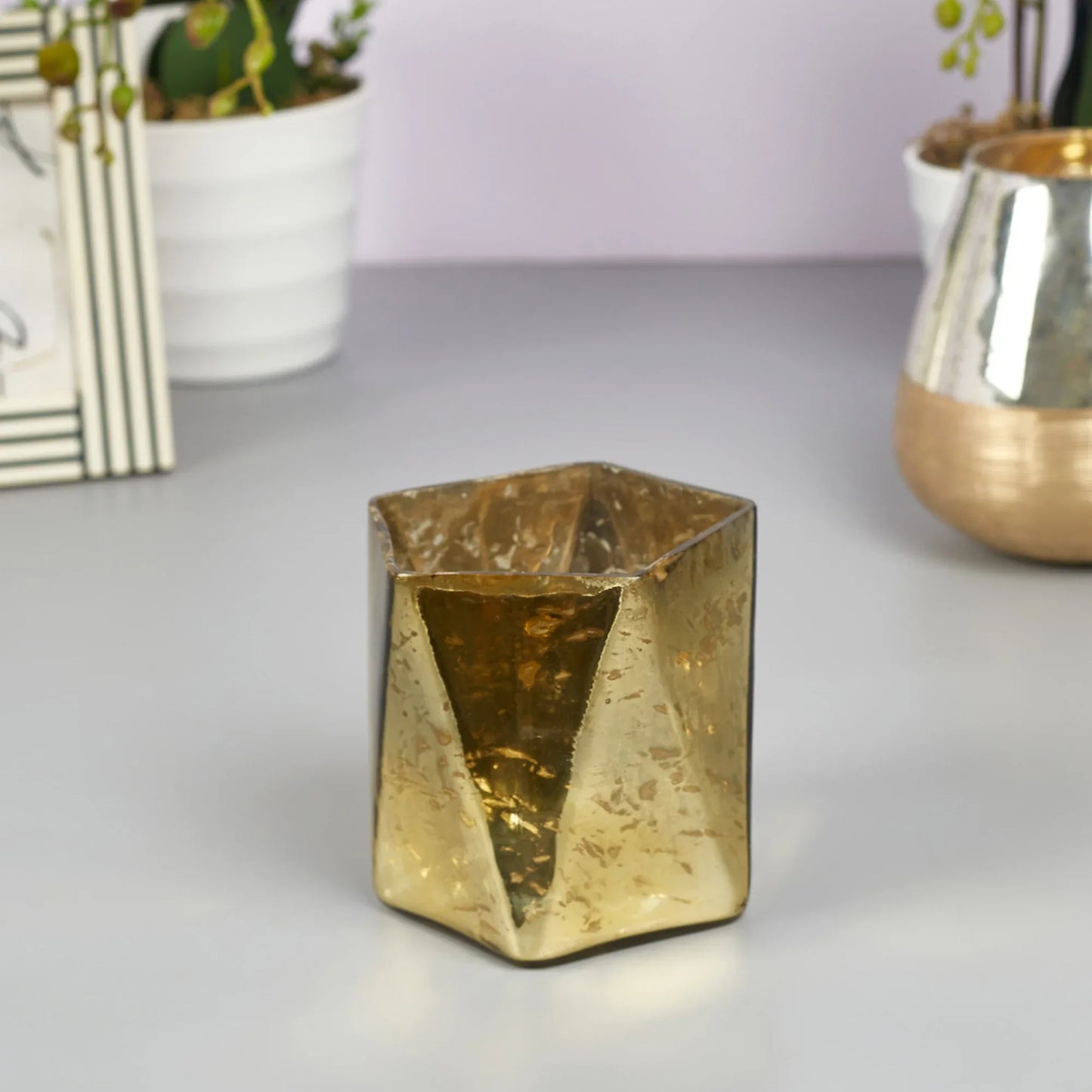 Phiona Glass Hexa Handcrafted Votive Mercury 13 Cm in Gold Colour