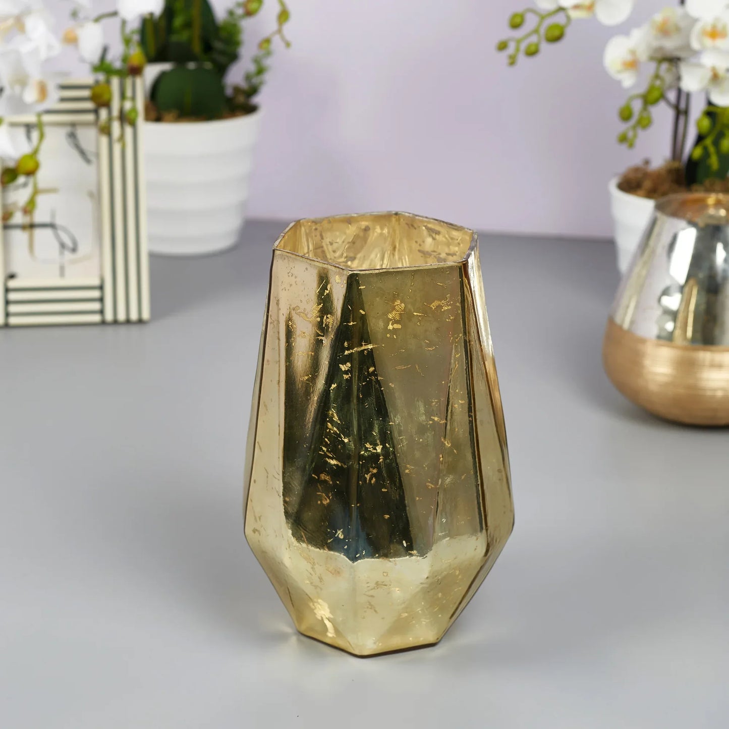 Phiona Glass Hexa Handcrafted Votive Mercury 24 Cm in Gold Colour