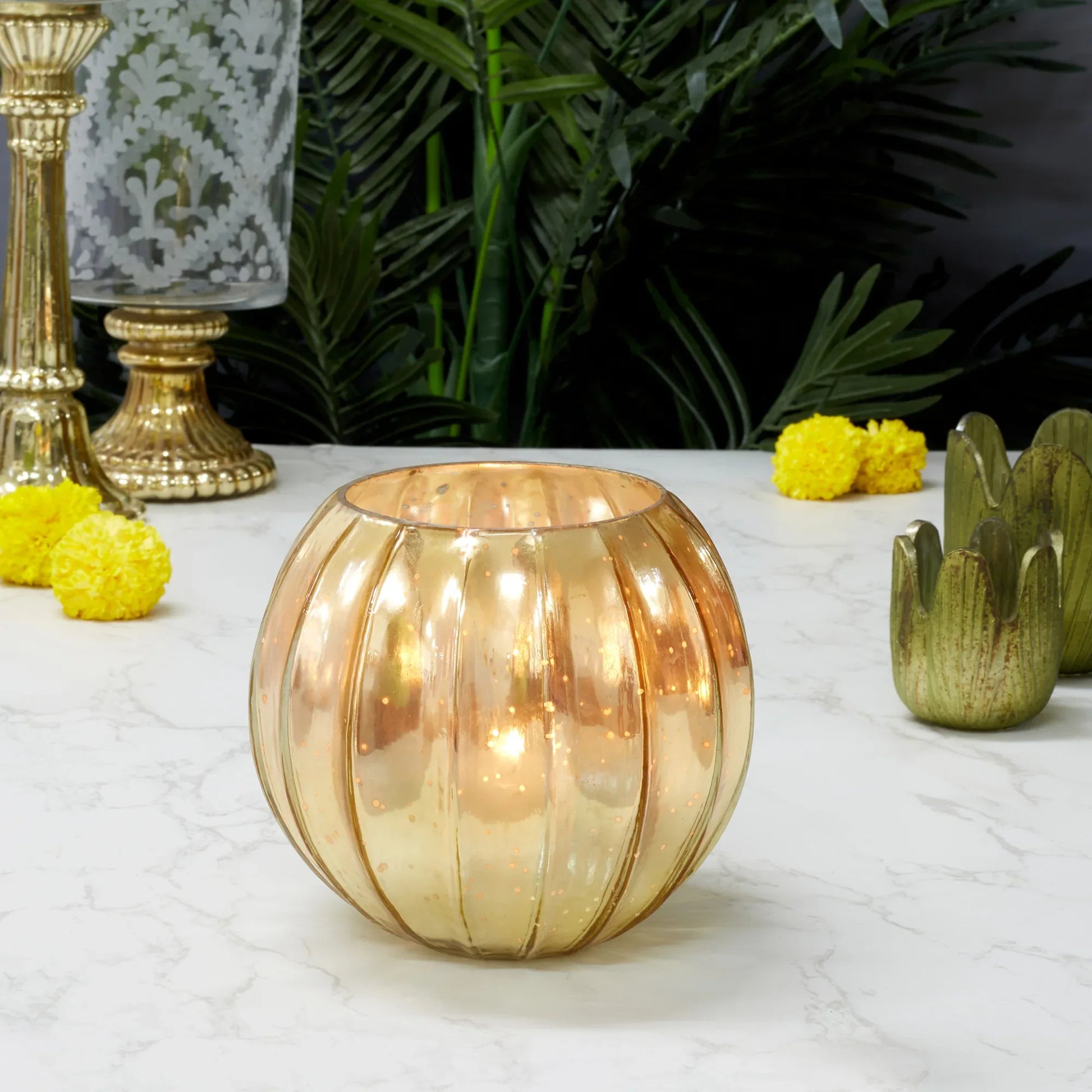 Phiona Glass Pumpkin Handcrafted Mercury Votive 14 Cm in Gold Colour