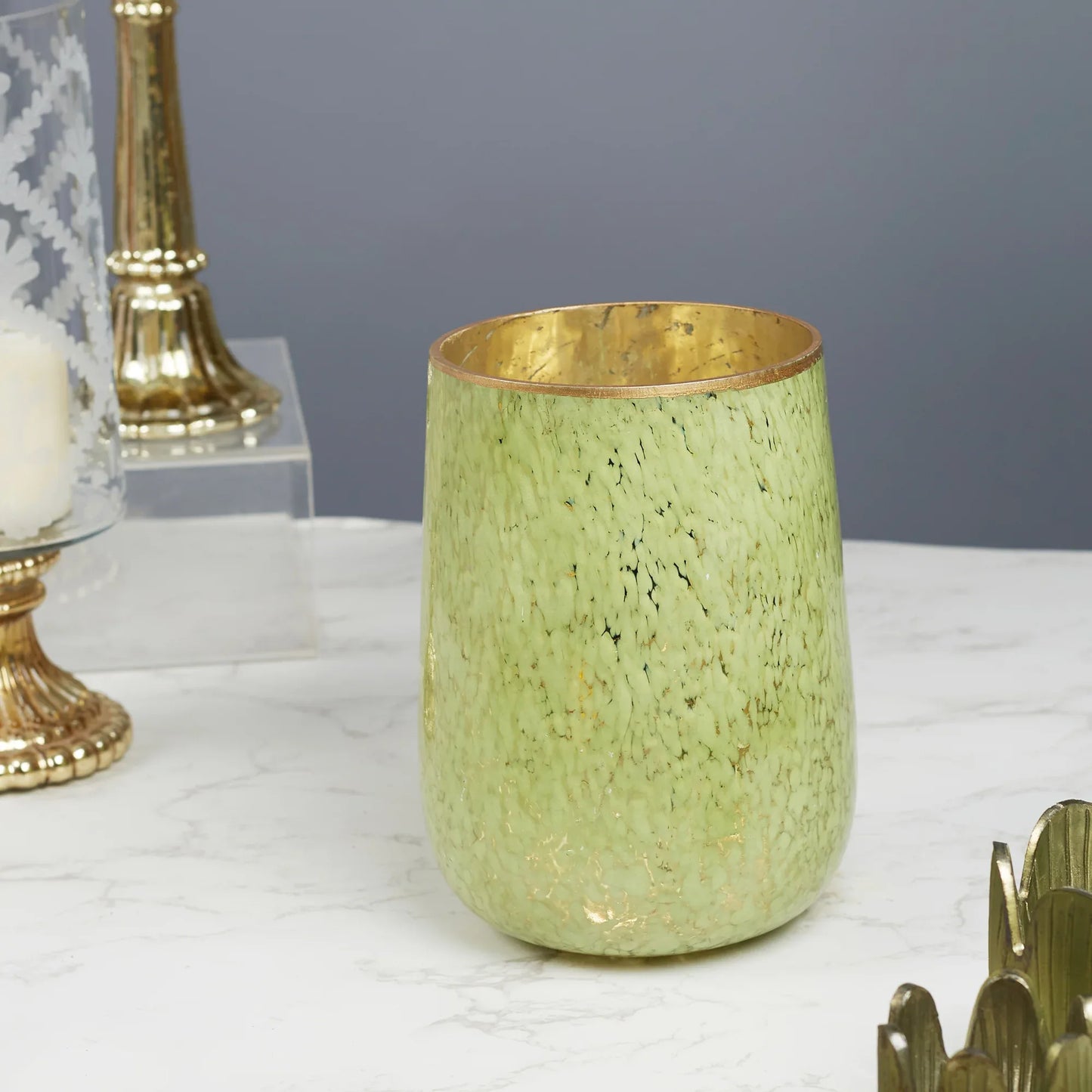 Phiona Glass Textured Handcrafted Vase 21 Cm in Olive Colour