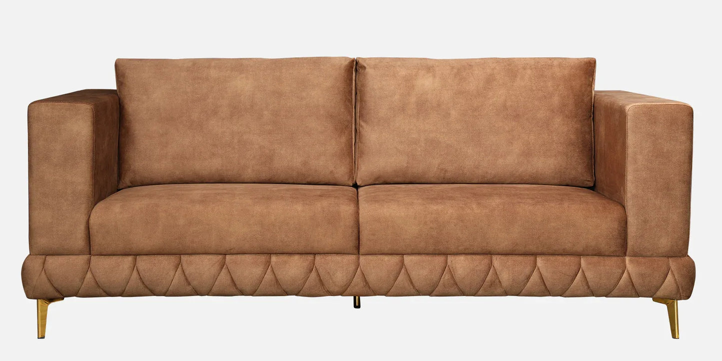 Plume Velvet Fabric Three Seater Sofa in Brown Colour