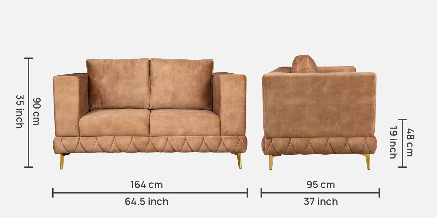 Plume Velvet Fabric Two Seater Sofa in Brown Colour
