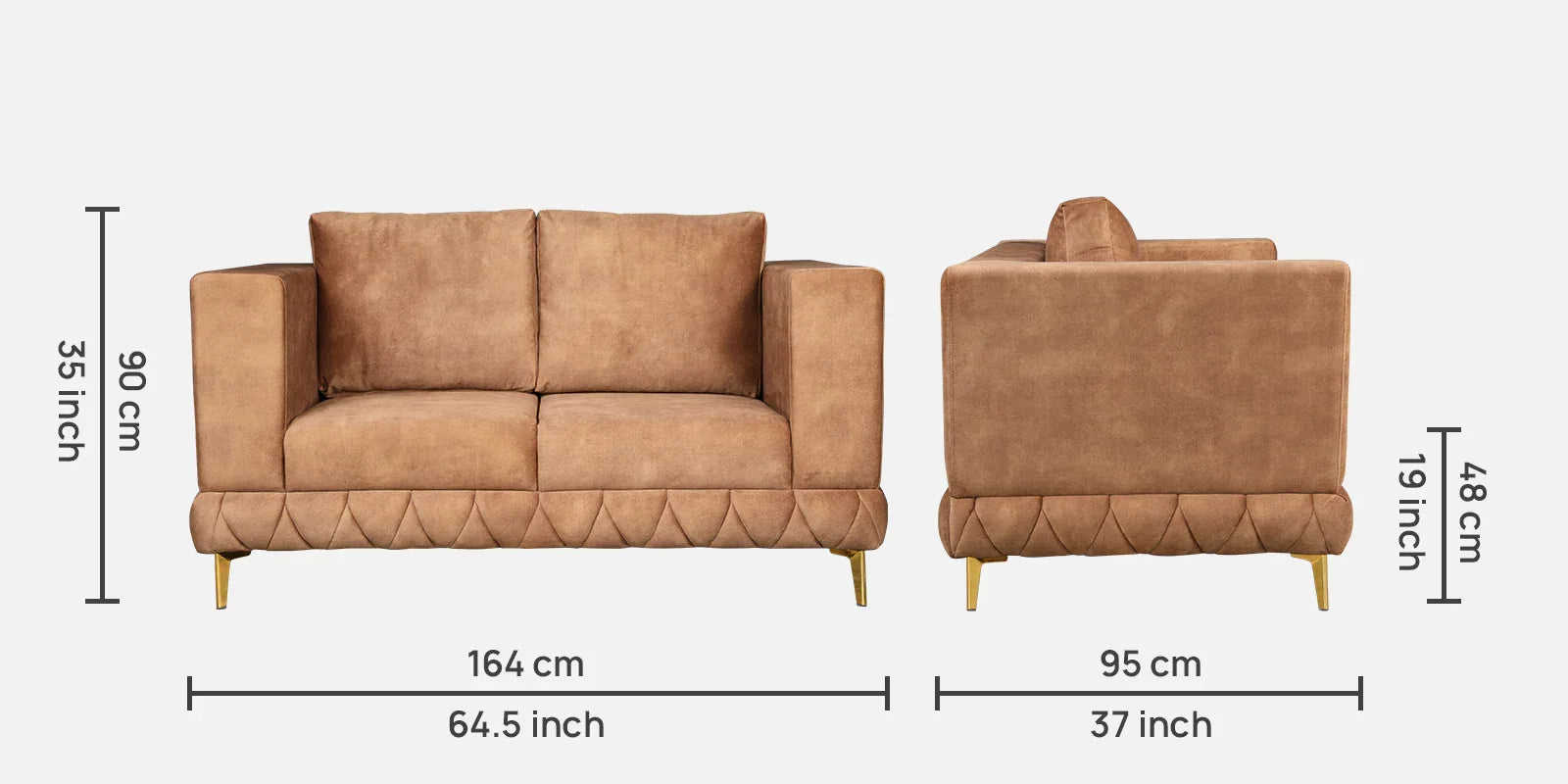 - This sofa showcases a modern design, has 12MM thick gold-plated metal legs, adding a touch of elegance to its design.
