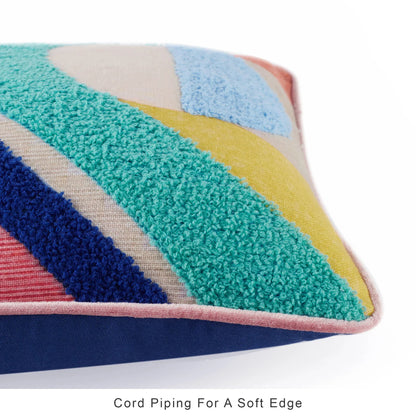 - Elevate your interiors with bold pop colours and overlapping geometric patterns. Experience the softness of crewel embroidered texture in an eclectic palette. Pair them with larger solids or micro pattern designs, accentuating their retro modern aesthetic in to your home.