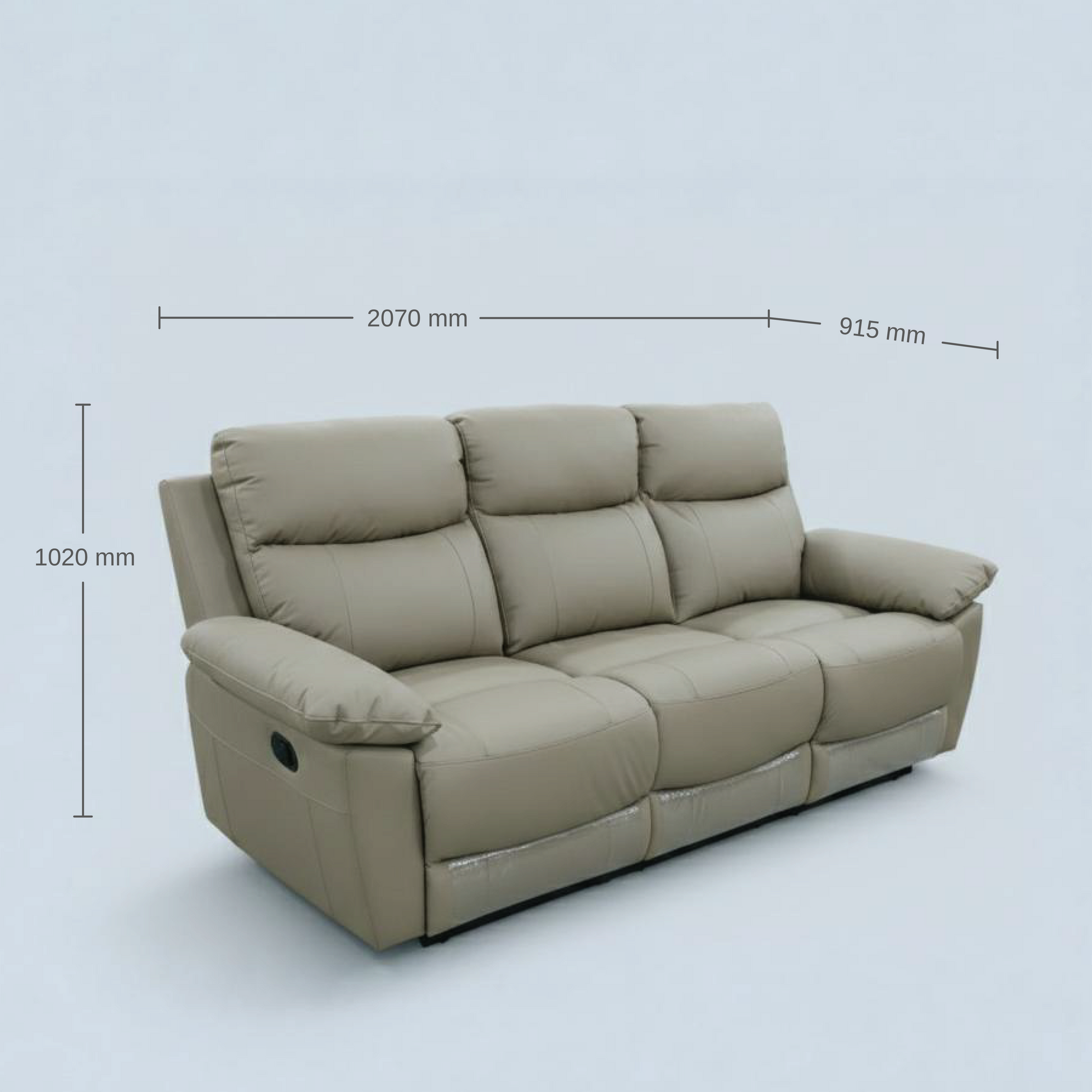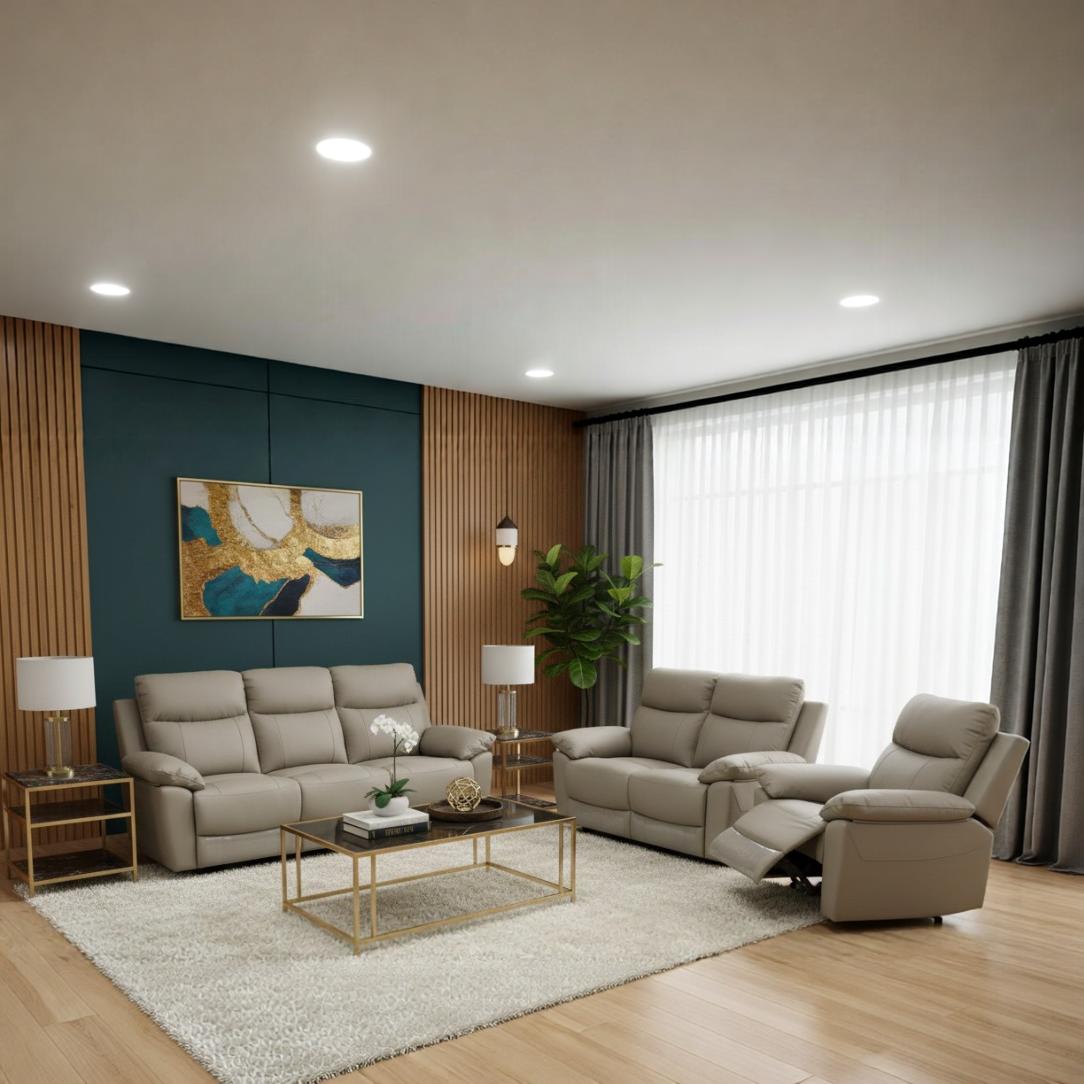 - QUANTUM HALF LEATHER RECLINER BEIGE is available in 3-Seater (With 2 Recliners) configuration in BEIGE colour.