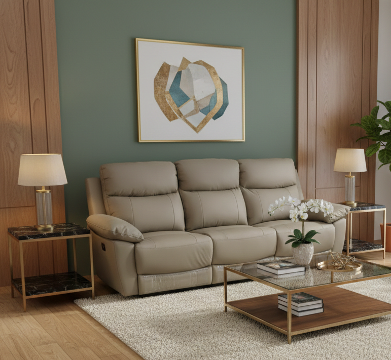 - Spacious three-seater design with dual recliners offers luxurious comfort and ample seating for family and guests.