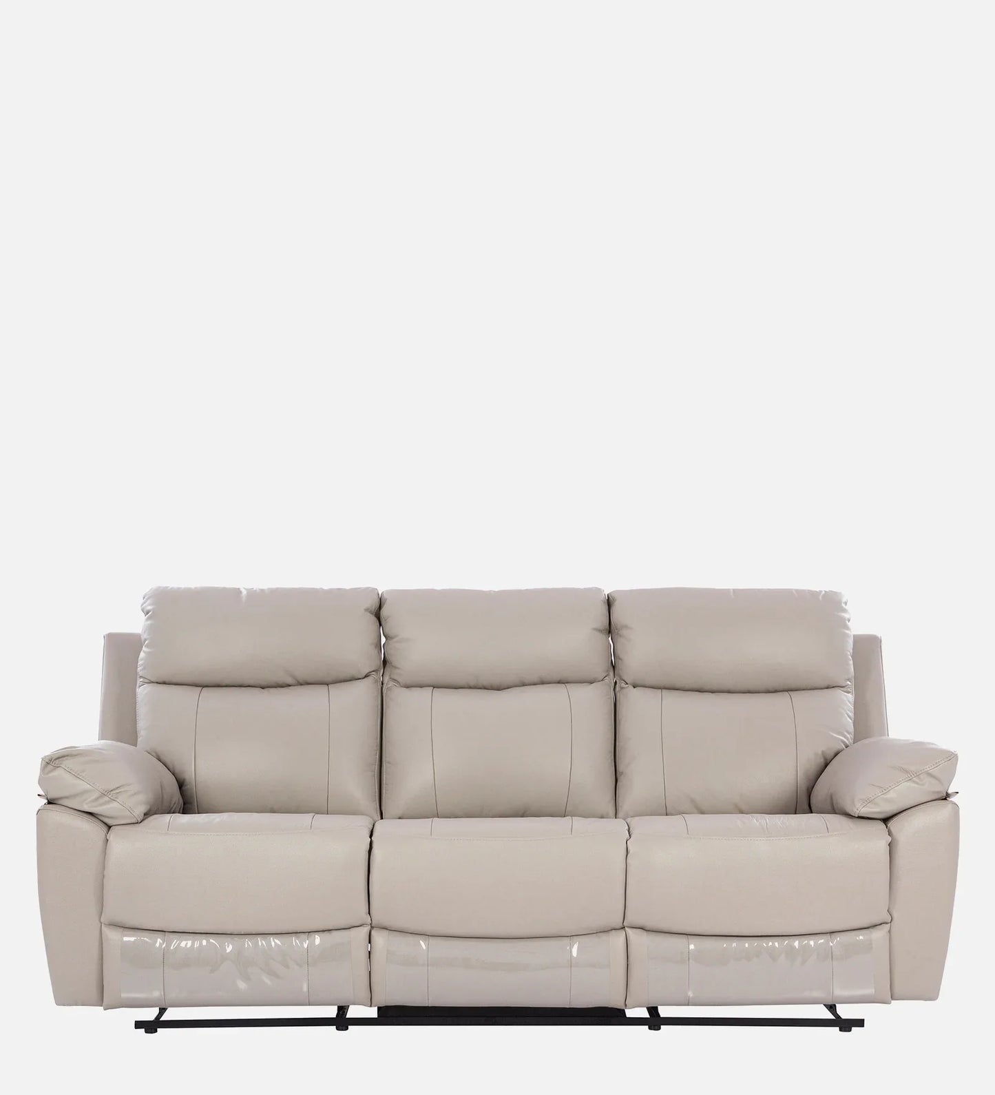 Quantum Half Leather Three Seater Recliner in Light Grey Colour