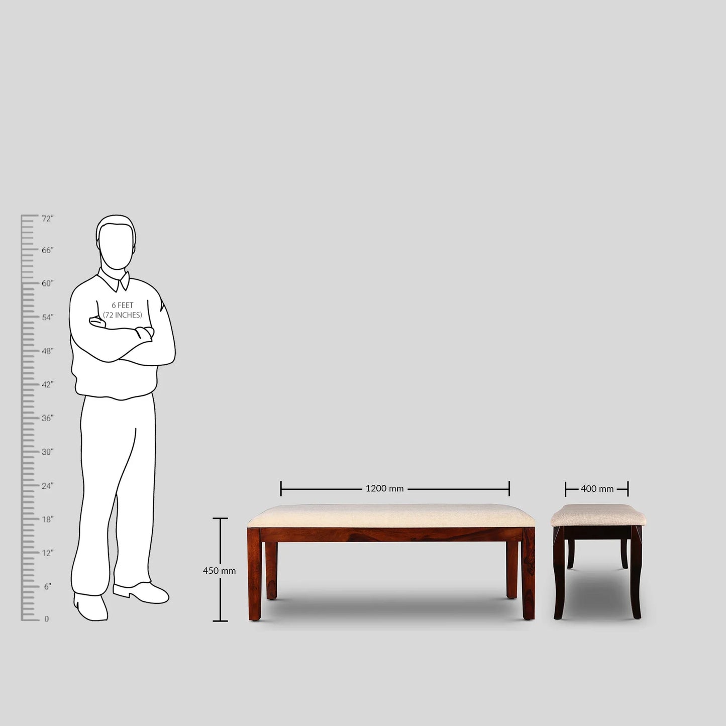 - Bench is made in thick sheesham wood. Bench legs also has a groove pattern which make them look more attractive. It comes with soft padding and plush upholstery that imparts a high-end look.