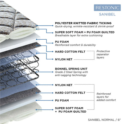 Restonic Sanibel Bonnel Spring King Mattress 84x72x6 Inch in Beige Colour