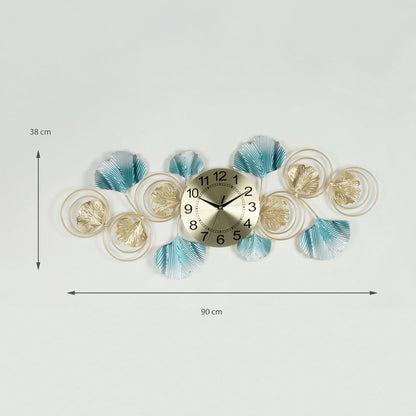 Rhythm Metal And Aluminum Gingko Magna Wall Clock in Seagreen & Gold Colour