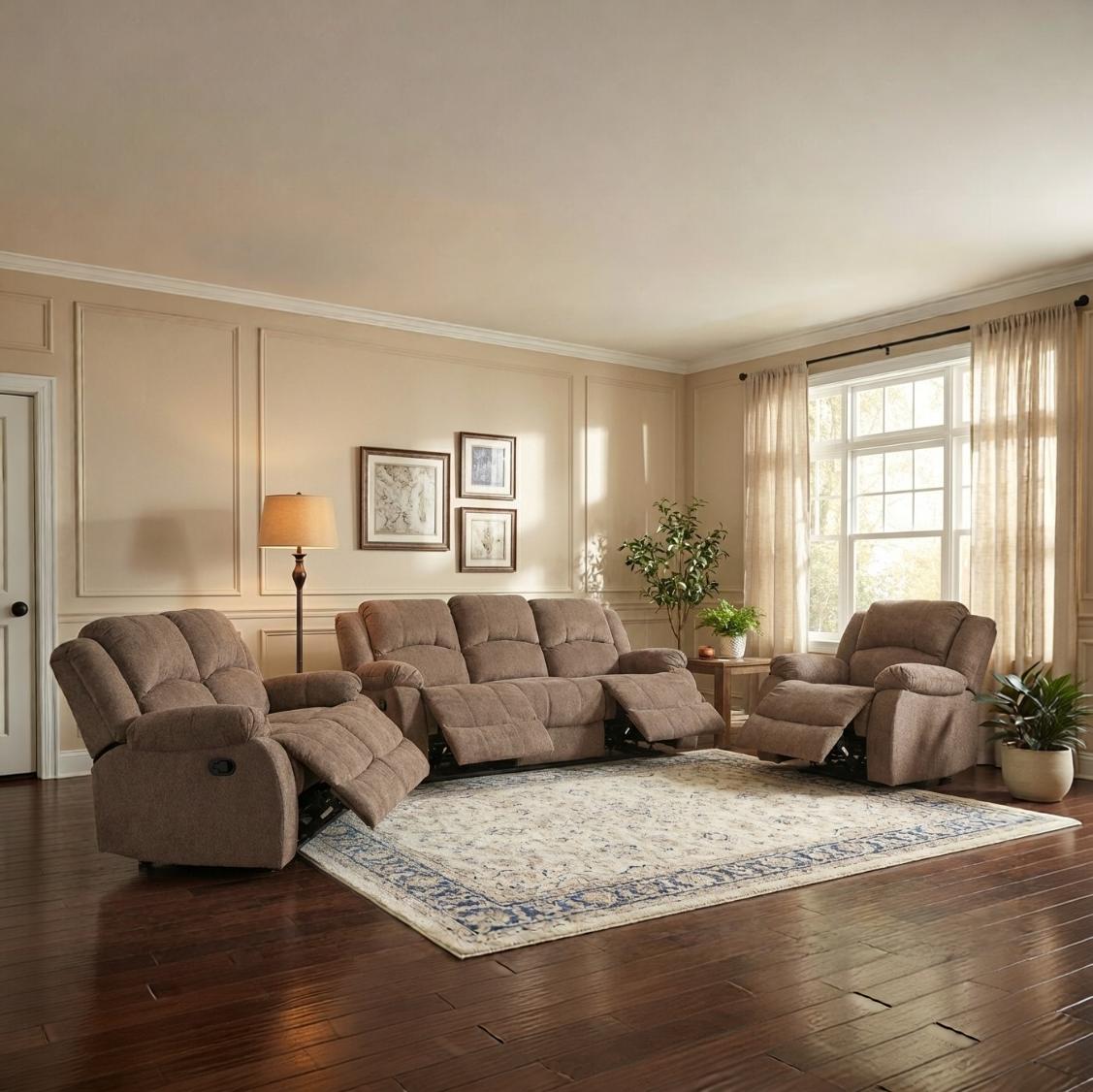 - Manual Recliner Mechanism ensures smooth and durable reclining performance.