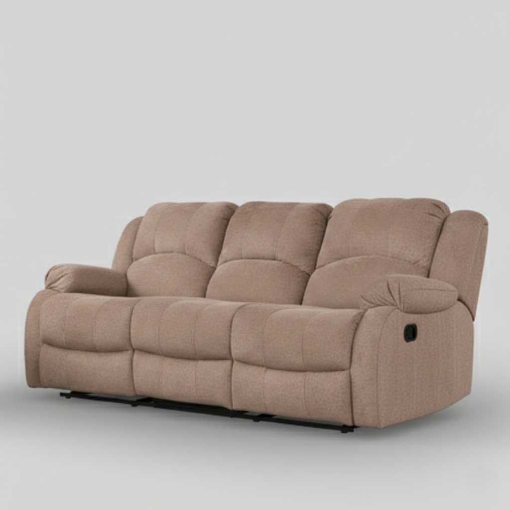 - RIO FABRIC RECLINER is available in 3-Seater configuration in Brown colour.