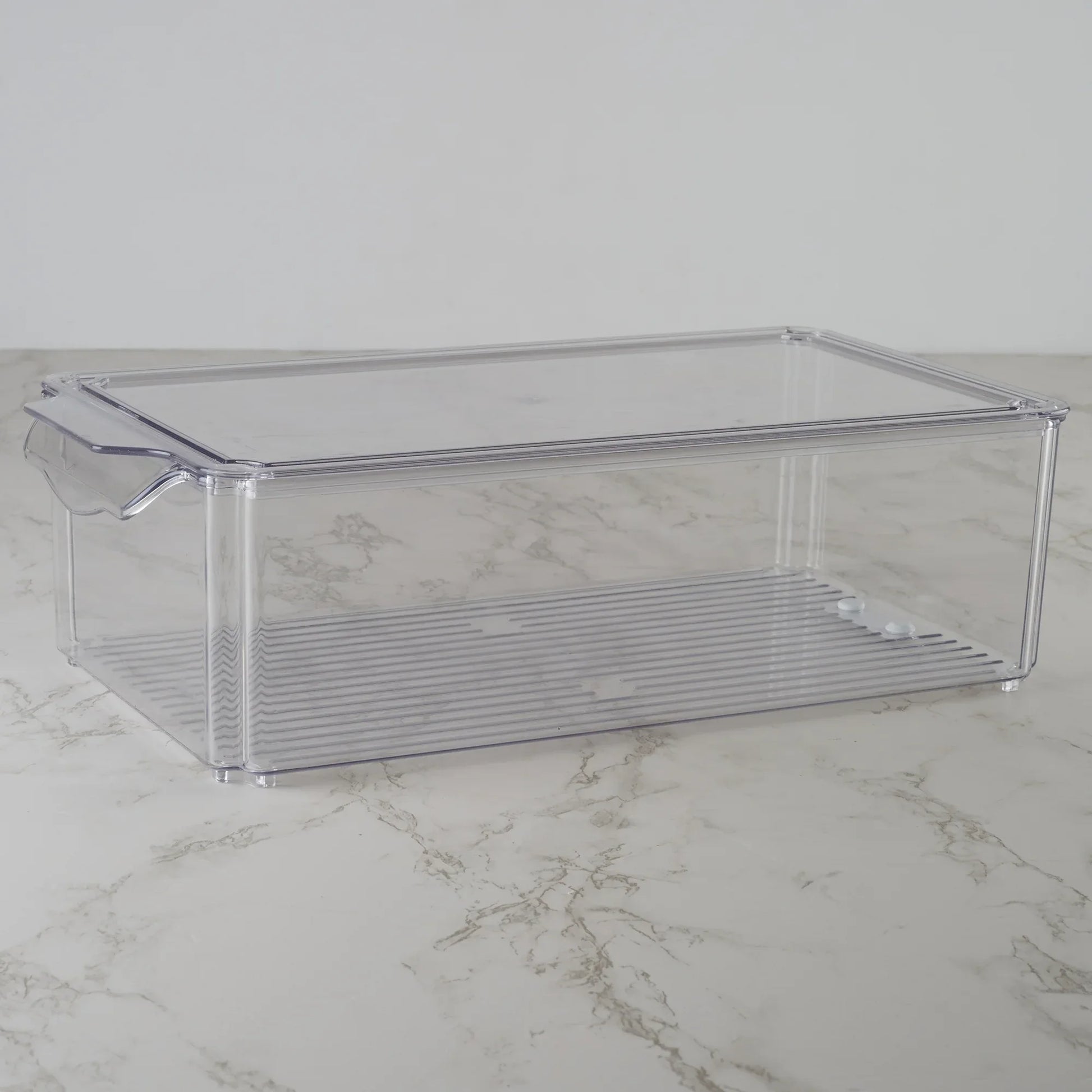 Robusto PET BPA Free Stackable Fridge Organizer with Lid & Drain - 6.1 Ltr in Transparent Colour