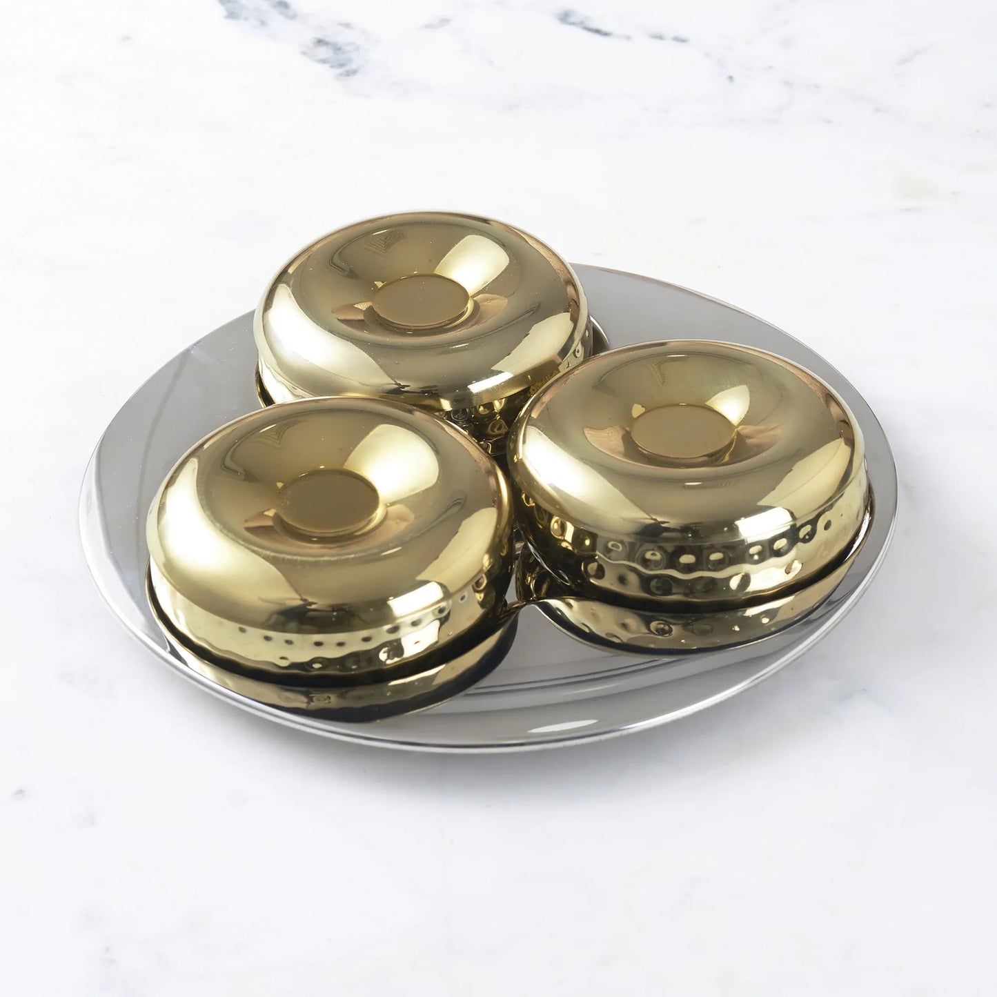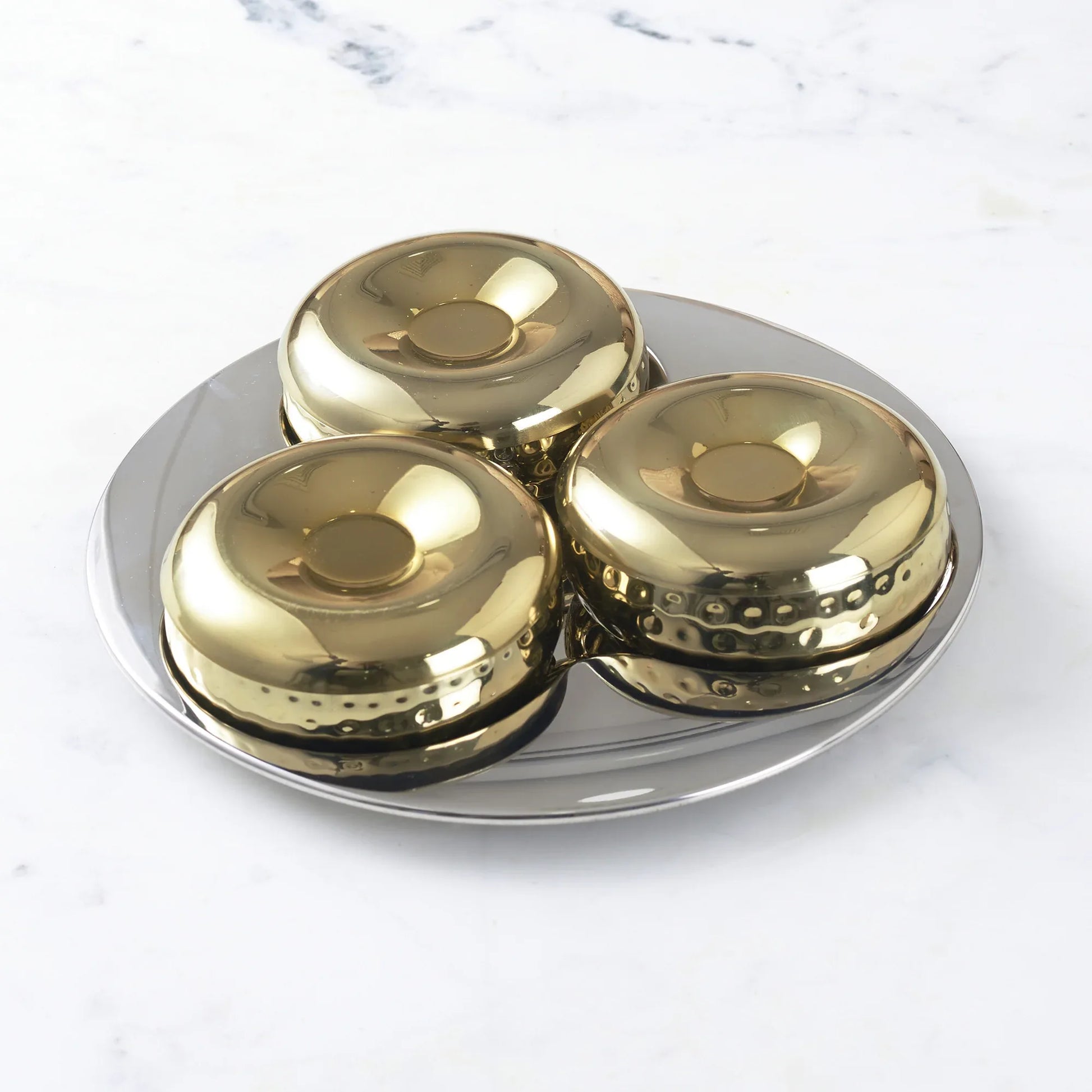 - This trendy bowl set in hammered gold finish is perfect for serving in every special ocassion.
