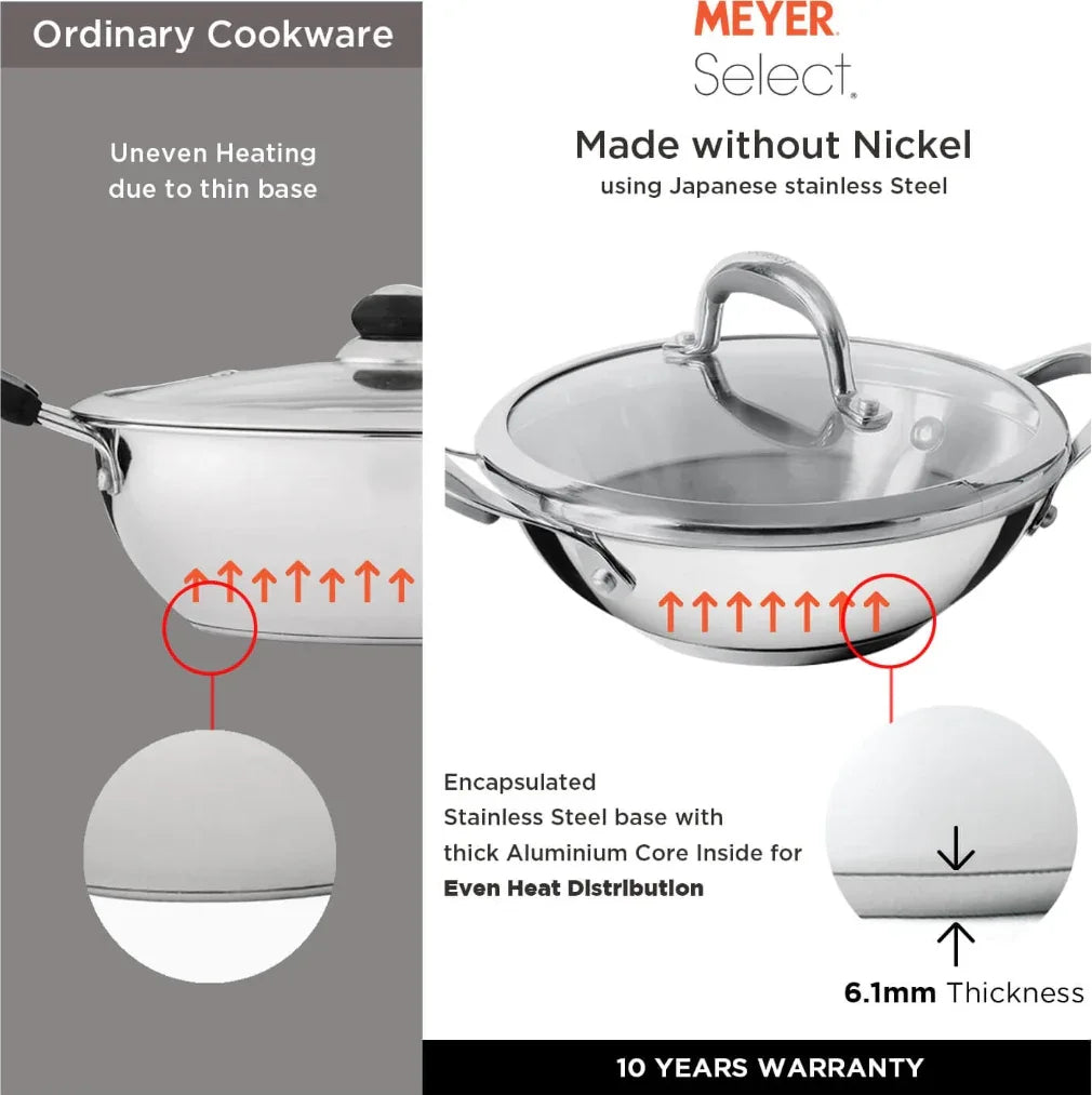 Select Stainless steel Induction Suitable Open Wok 26Cm in Silver Colour