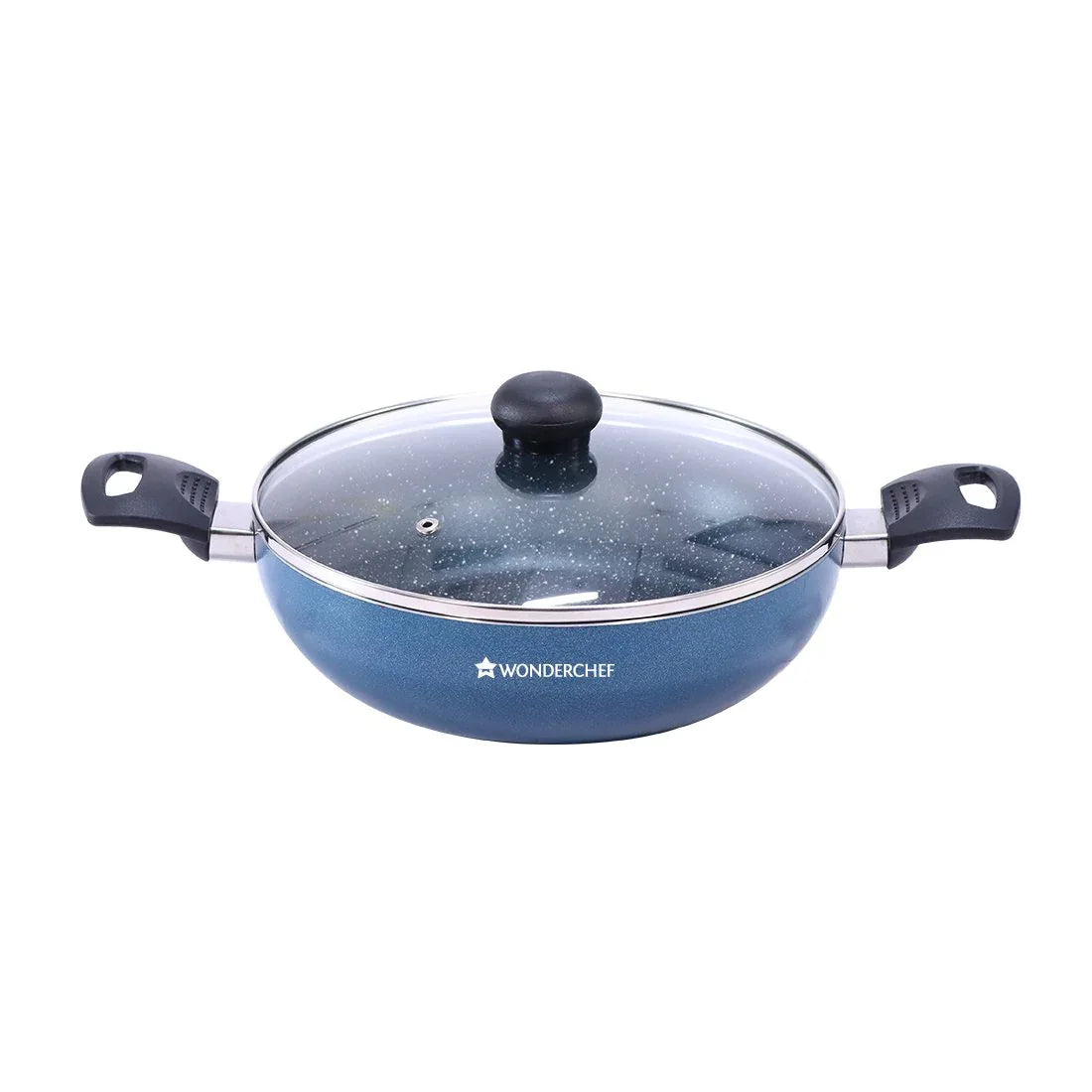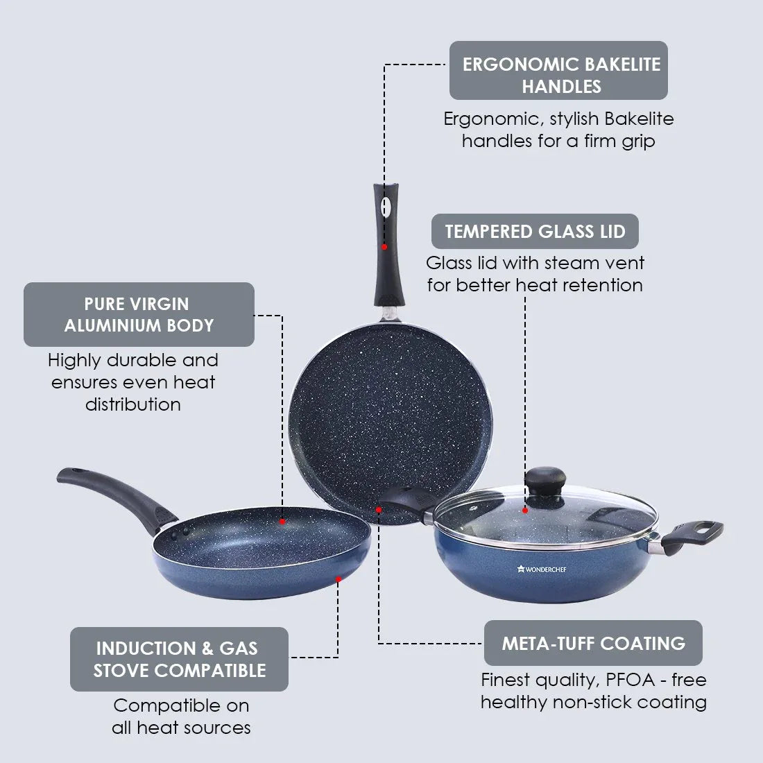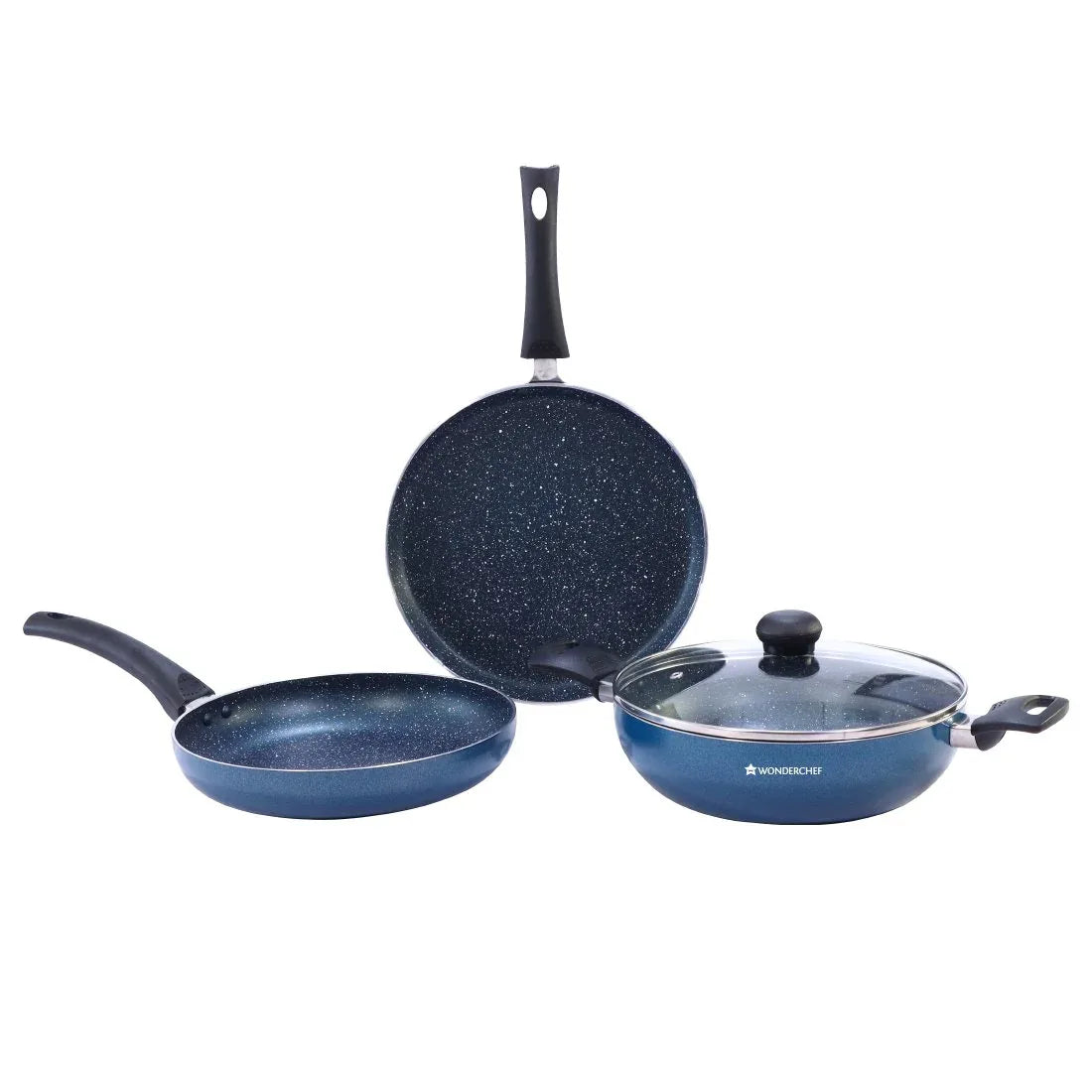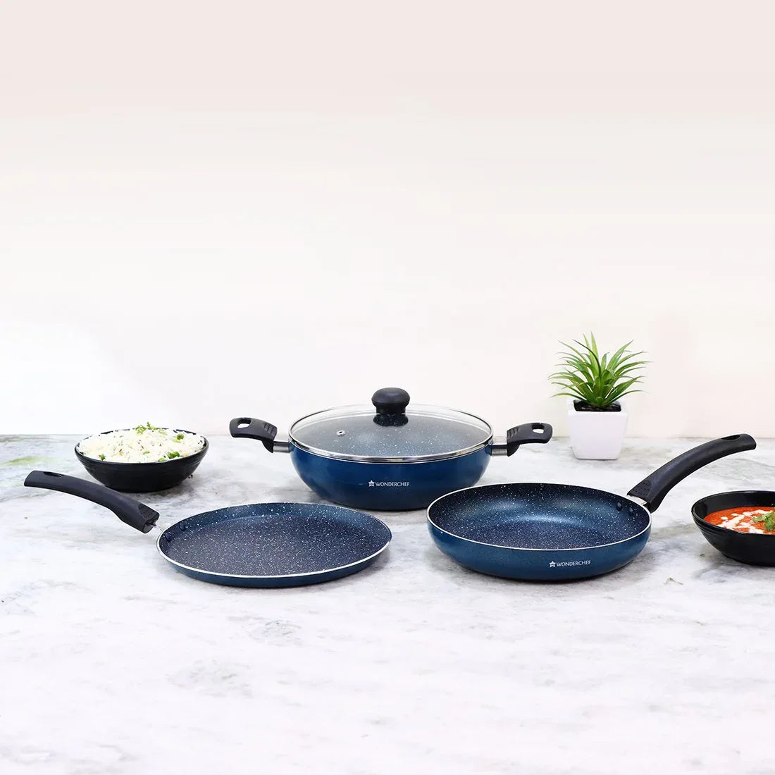 Sigma Kadhai - 24cm, Fry Pan -24cm- Thikness 2.8mm, Glass Lid- 24cm, Dosa Tava- 28cm - Thikness 3mm in Blue Colour