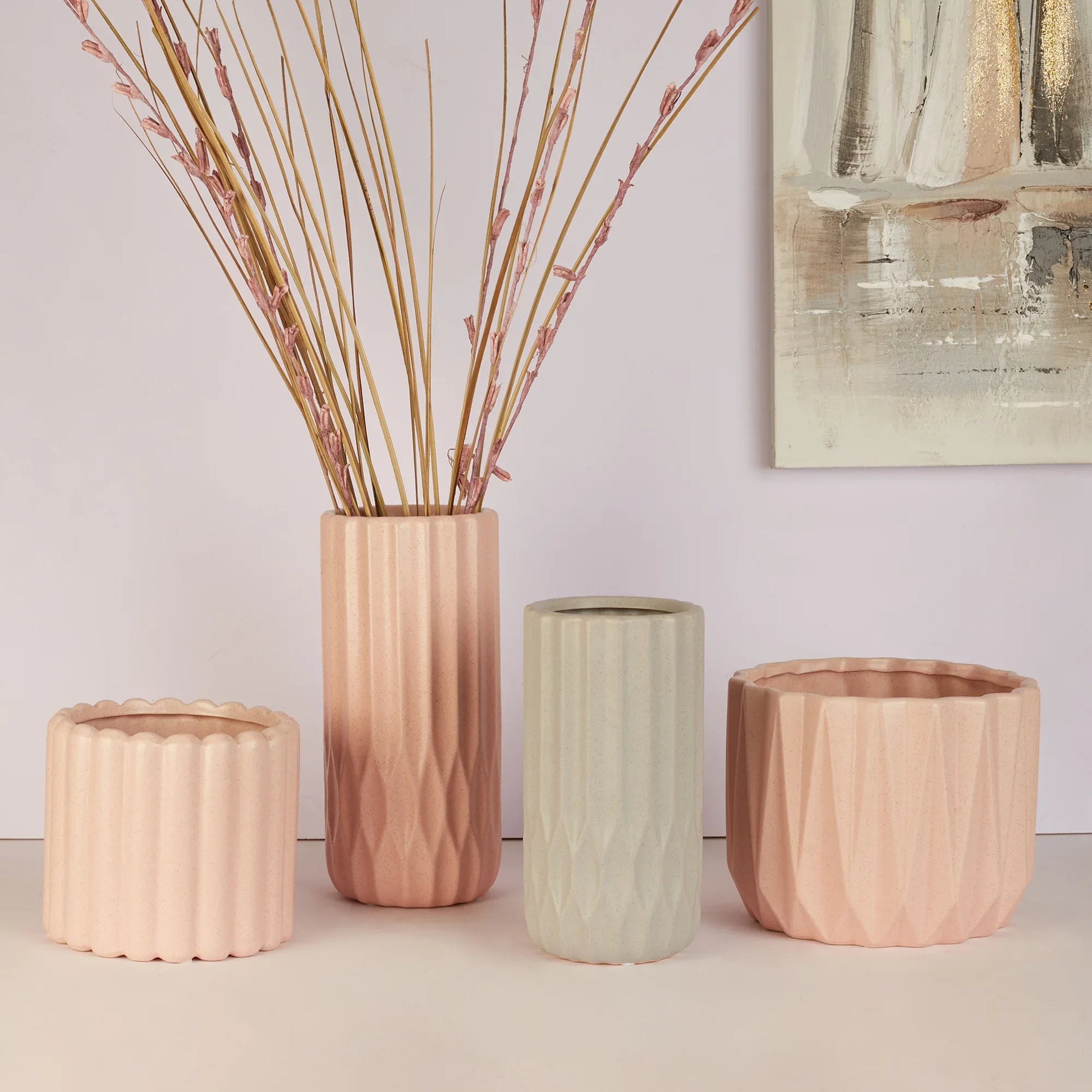 - This petite, pretty pink ceramic vase will help you proudly display your favourite blooms. It perfectly enhances the look of your plants, especially short-stemmed flowers. Give your table top a soft, serene finish with this decor accent.