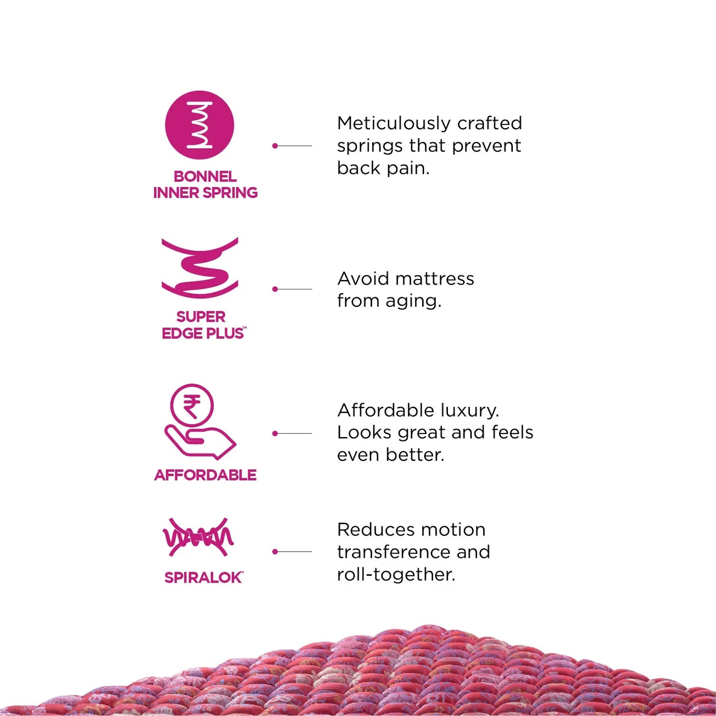 Springkoil Bonnel Spring Double Mattress 72x48x8 Inch in Maroon Colour