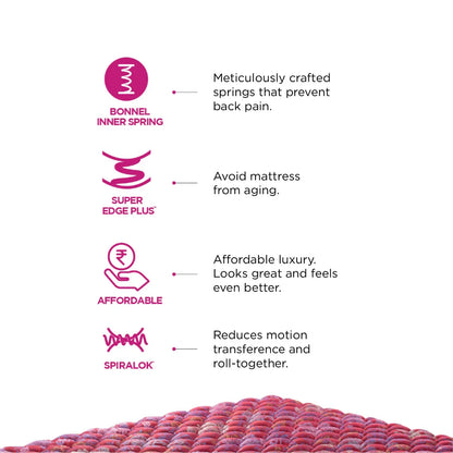 Springkoil Bonnel Spring Single Mattress 75x36x6 Inch in Maroon Colour